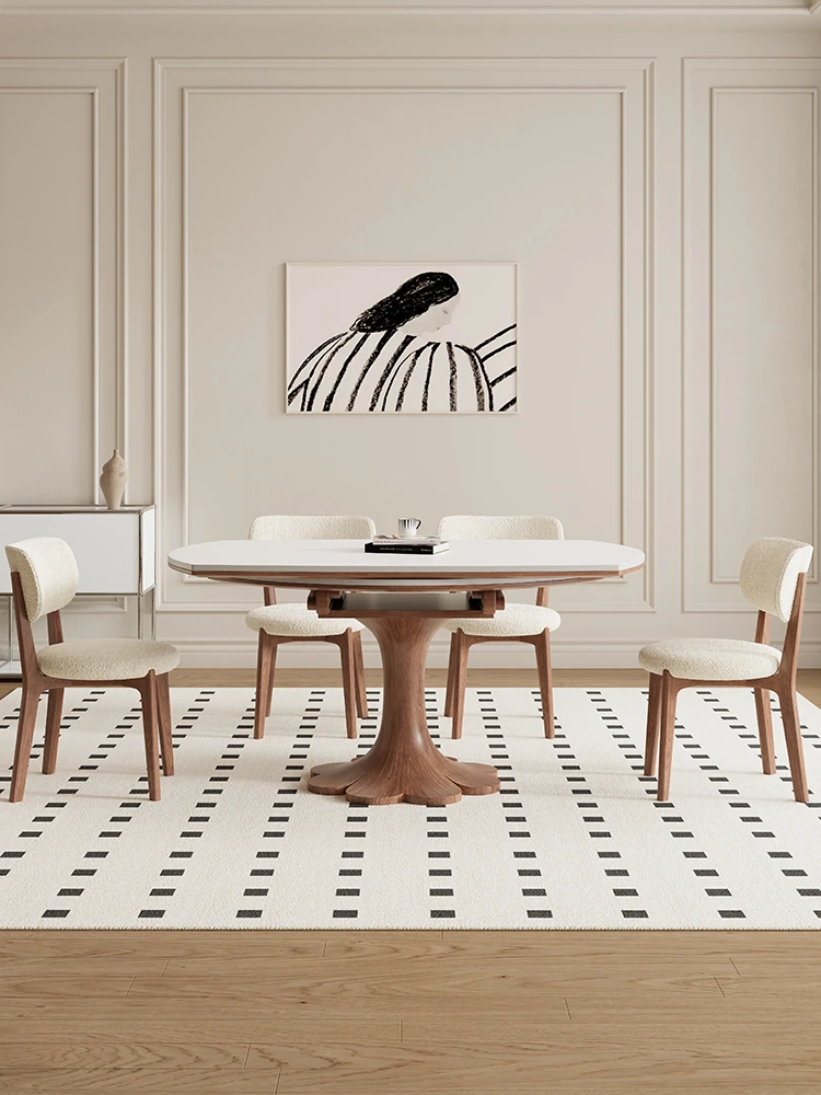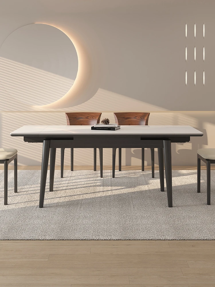 Delifeng Solid Wood Rock Plate Dining Table - Expandable, Space-Saving Design for Small Homes, French Vintage Style, Elegant Square & Round Convertible Dining Table for High-End Living