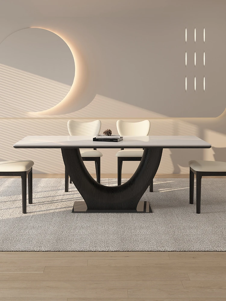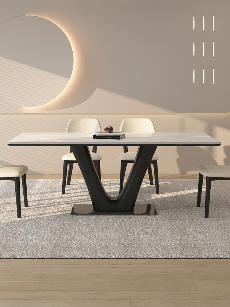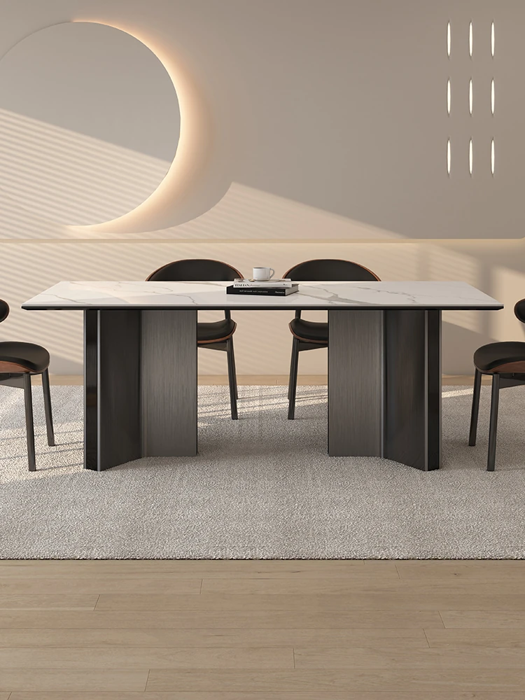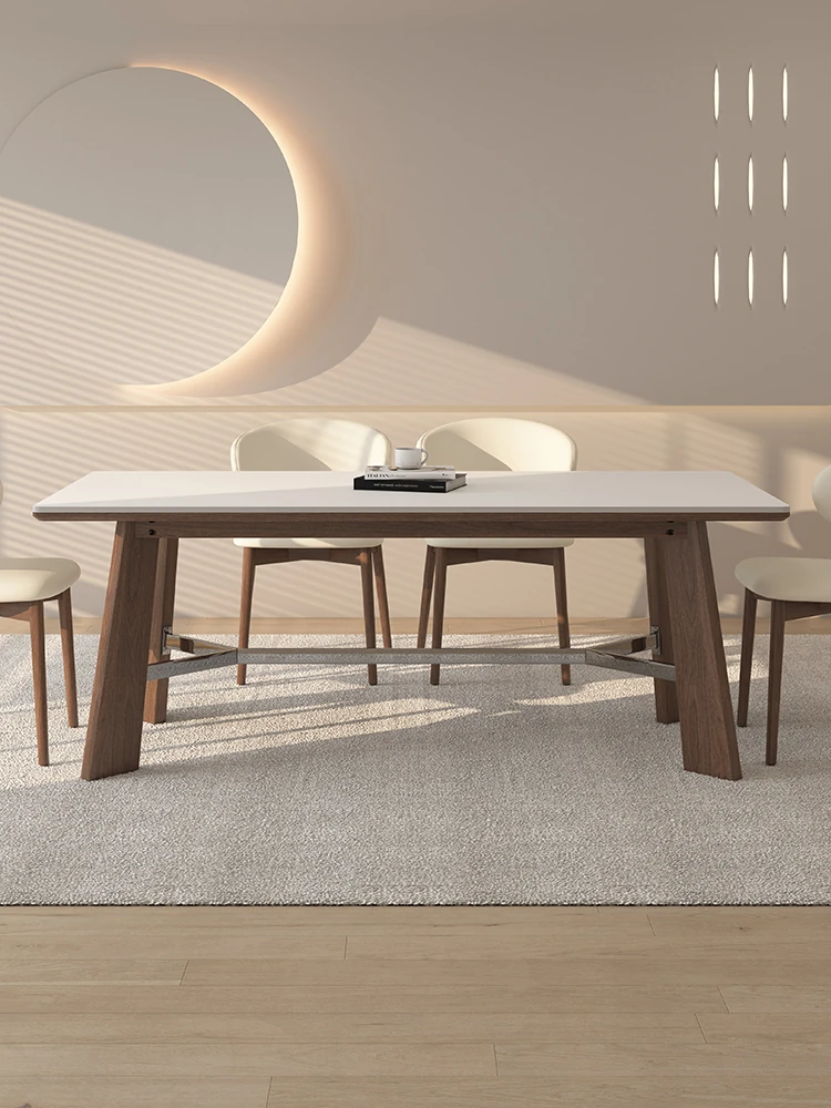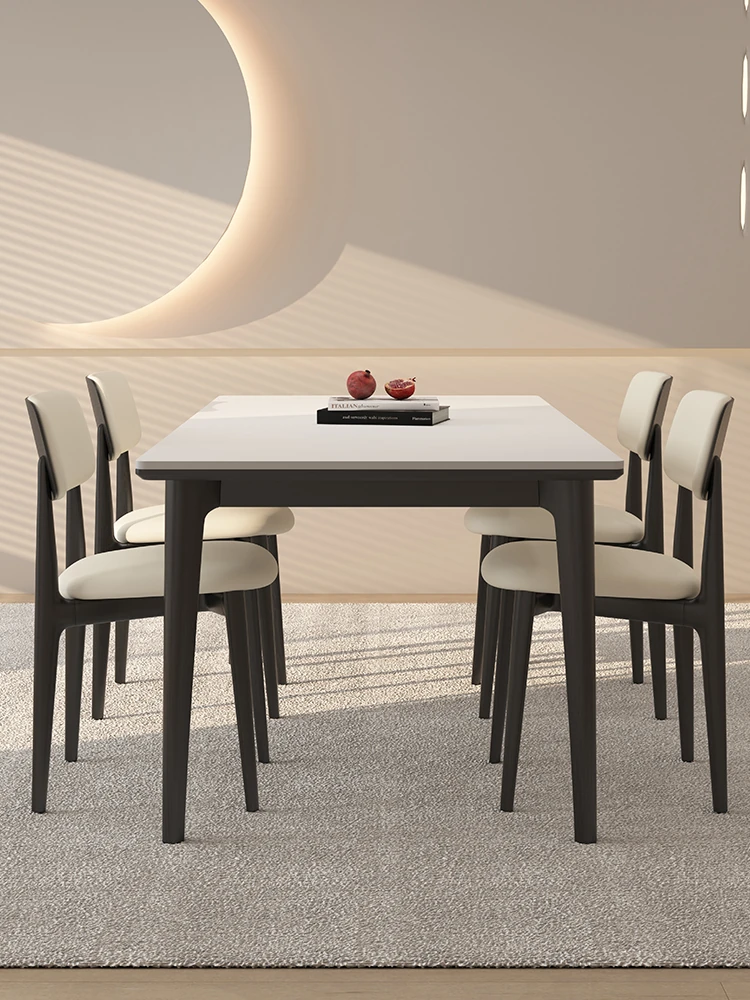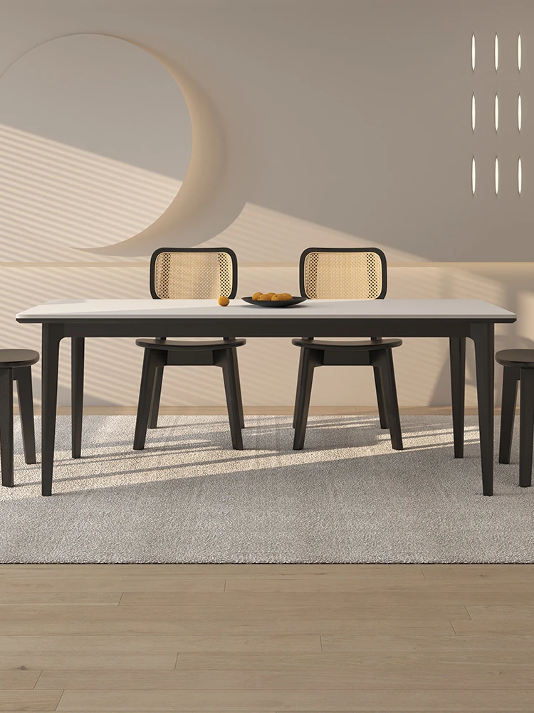 Vintage-Inspired Solid Wood Dining Table with Natural Stone Top - Modern Minimalist Luxury Rectangle Table for Home Use - Perfect for Elegant Dining Experiences