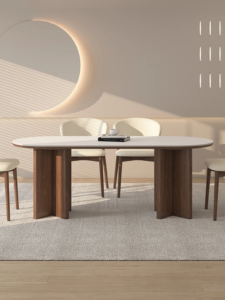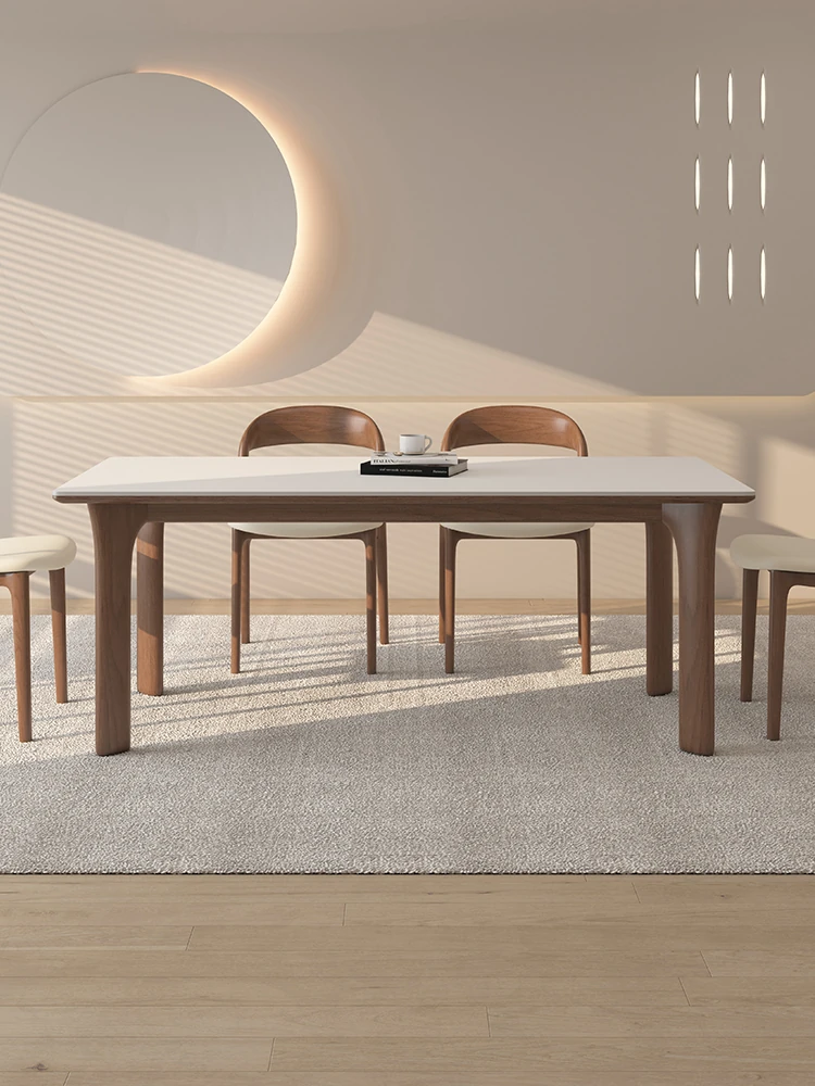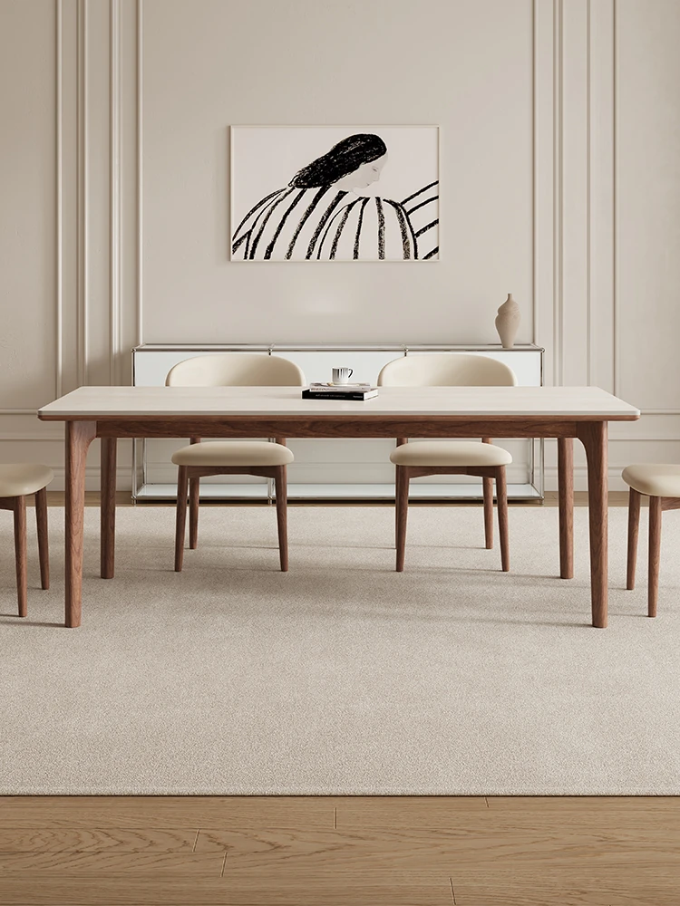 High-End Black Walnut Solid Wood Dining Table - Rectangular Cream Vintage Style with Natural Grain, Perfect for Home Use