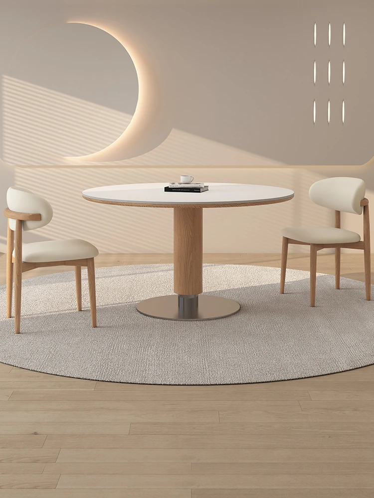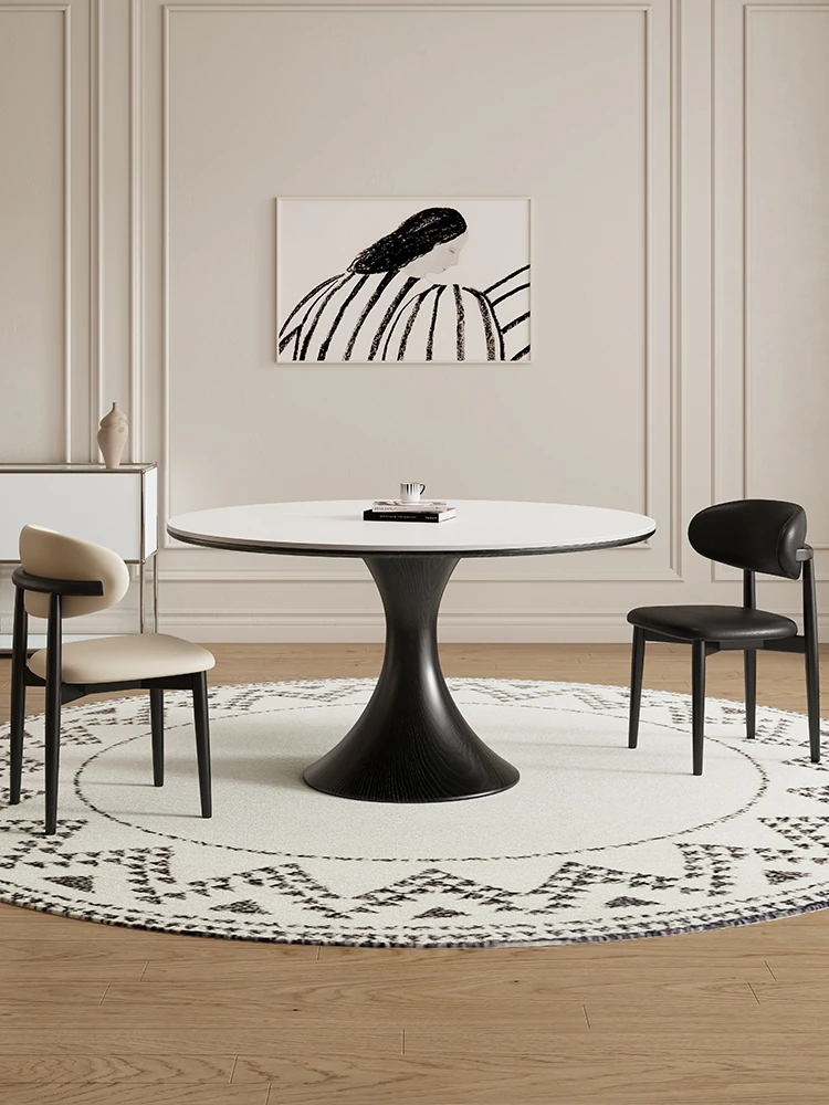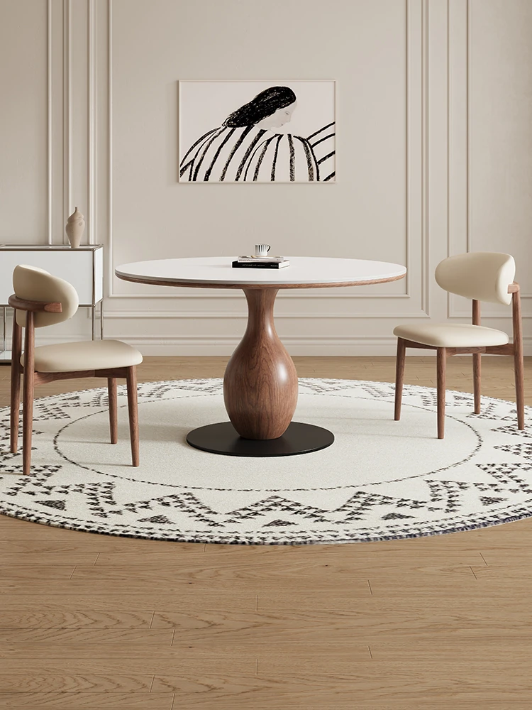 Delifeng Round Rock Plate Dining Table for Small Spaces - Elegant Pure White and Natural Wood French Cream Vintage Style Full Support Round Table for Home Use