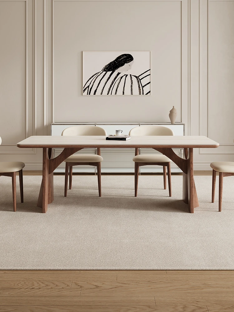 Delifeng Solid Wood Rock Plate Dining Table - Elegant Rectangular Design for Home, French Vintage Style, Perfect for Small Spaces, High-End Trendy Dining Table
