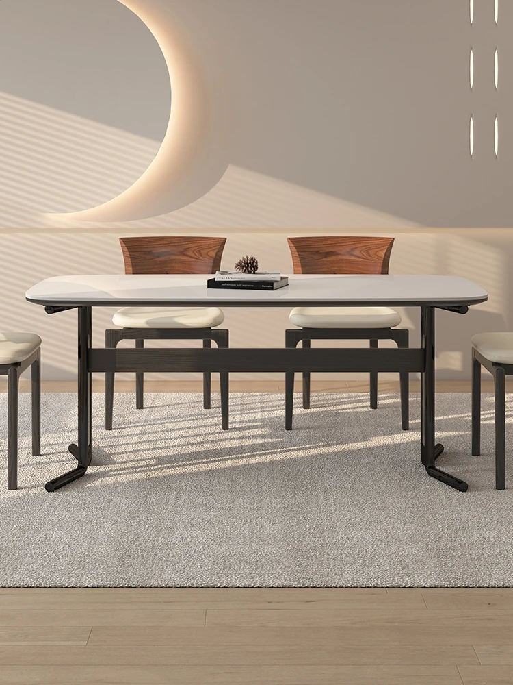 Delifeng Solid Wood Rock Plate Rectangular Dining Table - Black Cream Vintage Style for Small Spaces, Fully Supported Designer Table
