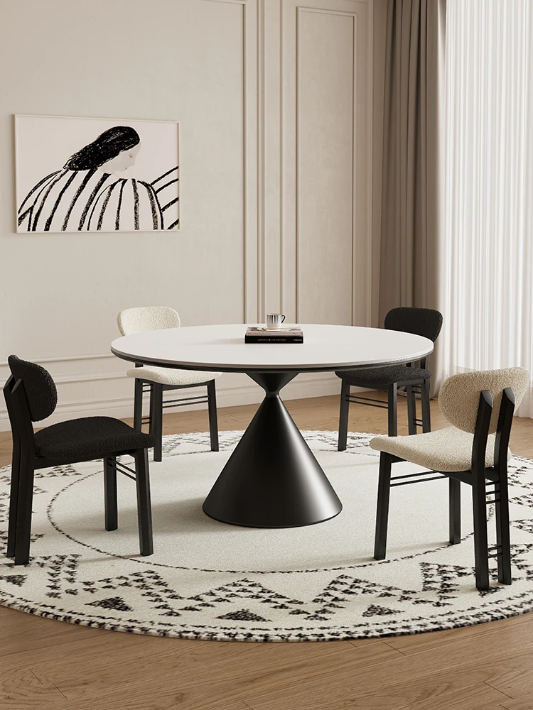 DeliFeng Solid Wood Rock Plate Dining Table - Cream Vintage Style, Elegant Design for Small Spaces, Trendy Black Dining Table for Home Use