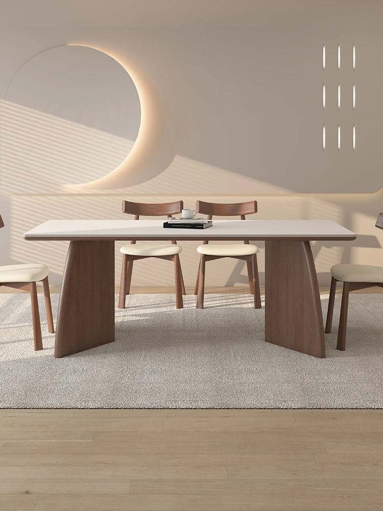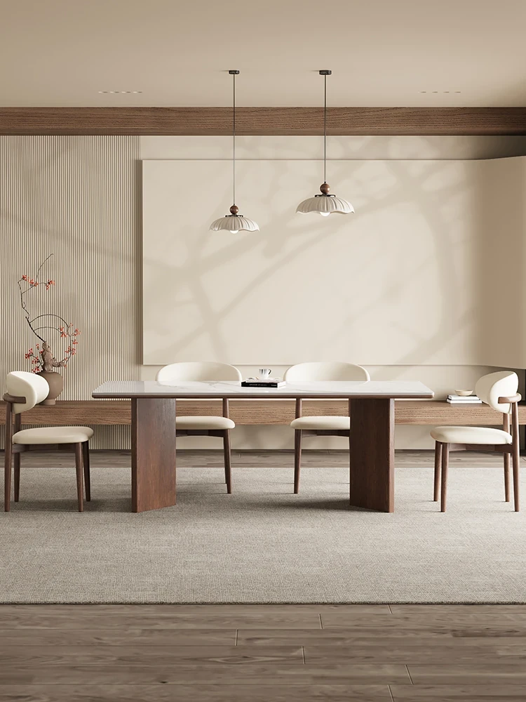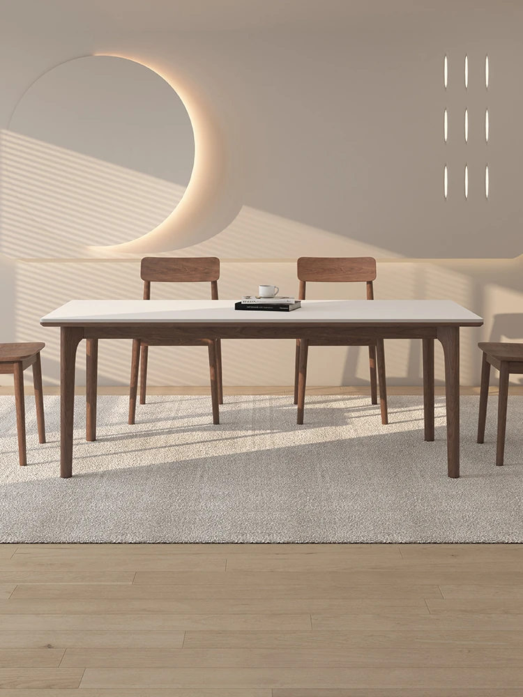 Delifeng Solid Wood Dining Table - Premium Black Walnut New Chinese Style Rectangular Table with Rock Slab Top for Elegant Dining Experience