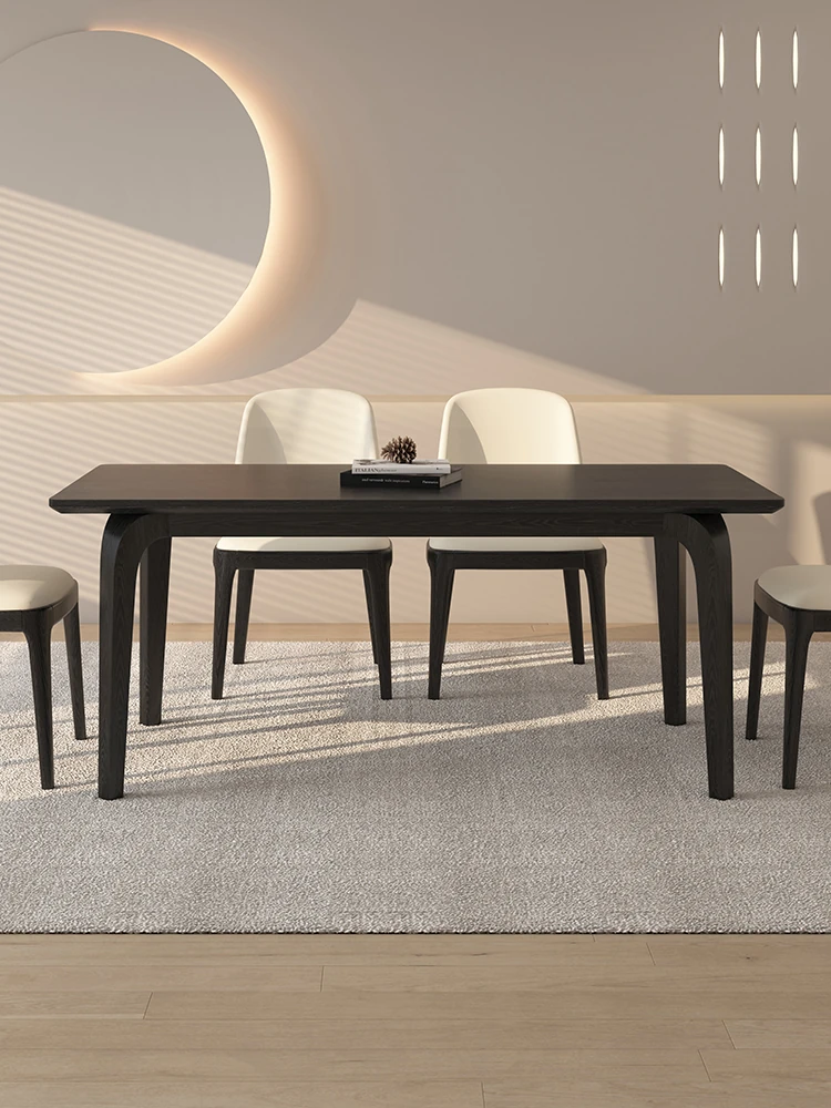 Delifeng Solid Wood Rectangular Dining Table - Cream Vintage High-End Black Natural Wood Dining Table for Home Use