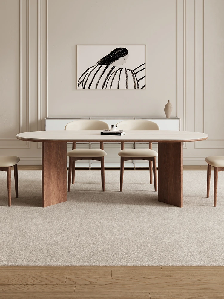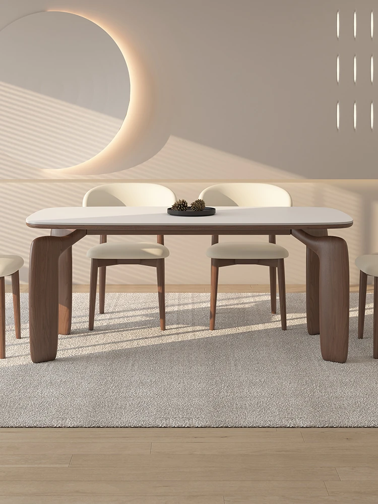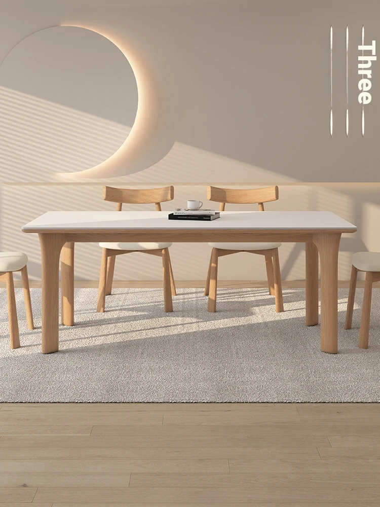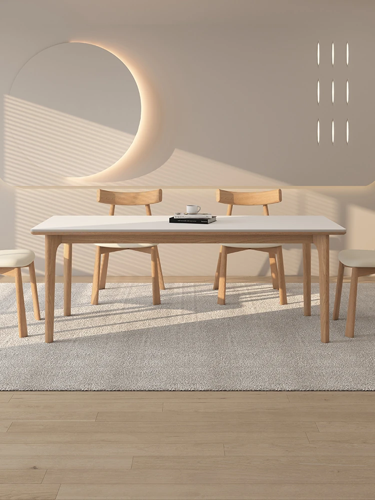 Delifeng Solid Wood Rock Plate Dining Table - Creamy Vintage Style for Small Spaces, High-End Light Luxury Rectangular Table for Home Dining