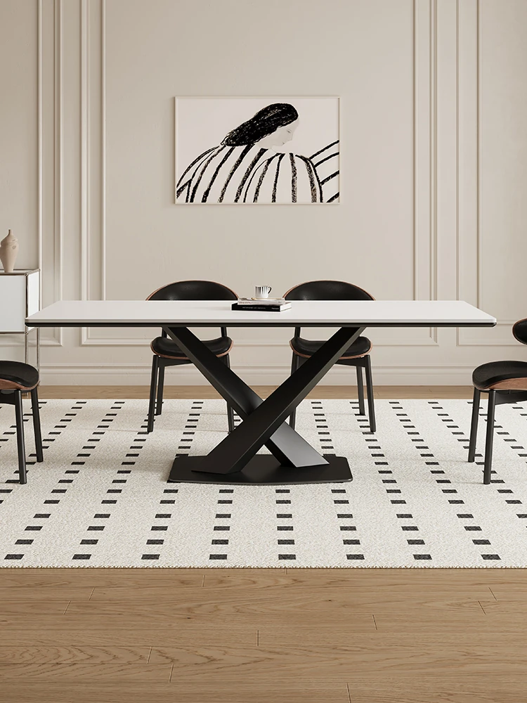 Delifeng Solid Wood Rock Plate Dining Table - Premium Cream-Colored Rectangular Table with Full Support, Perfect for Home and Vintage Style Dining Experience