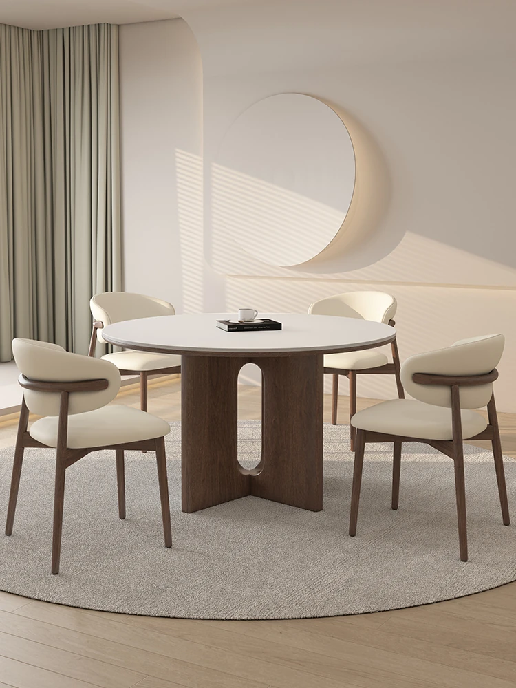 Elegant Round Solid Wood Dining Table for Small Spaces - New Chinese Style Creamy Vintage High-End Walnut Finish, Perfect for Cozy Homes
