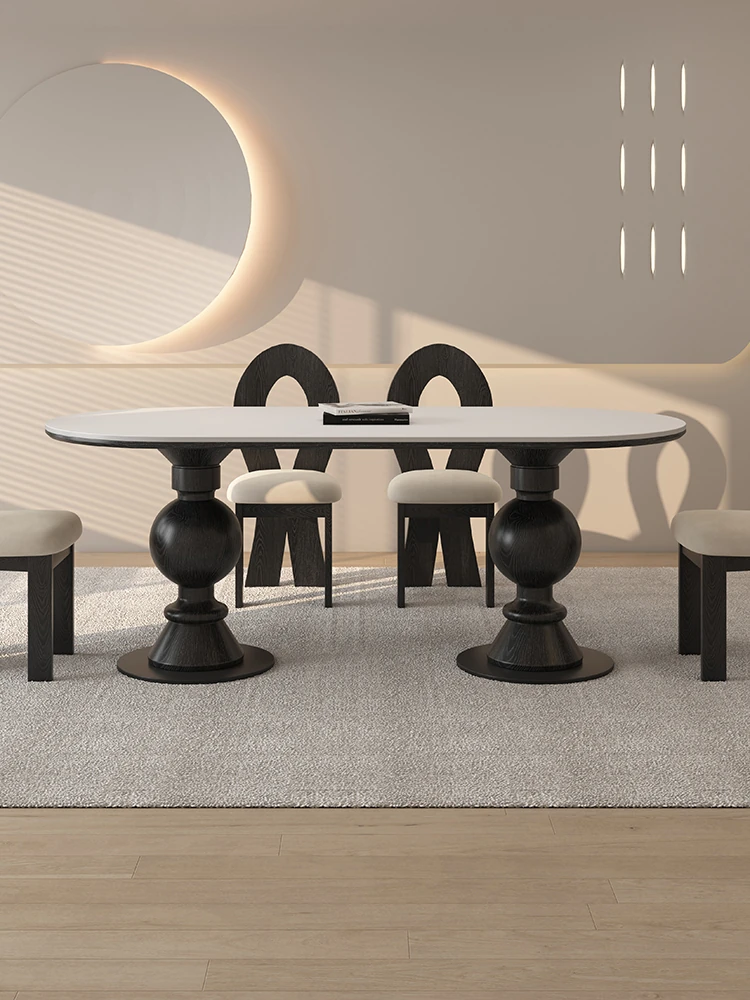 Delifeng Solid Wood Rock Slab Dining Table - High-End Black Vintage Style Oval Table for Small Spaces, Crafted from Ash Wood for a Luxurious Dining Experience
