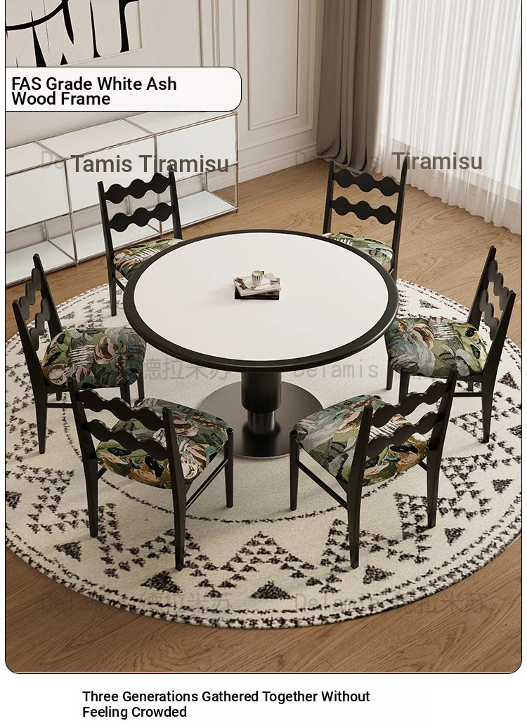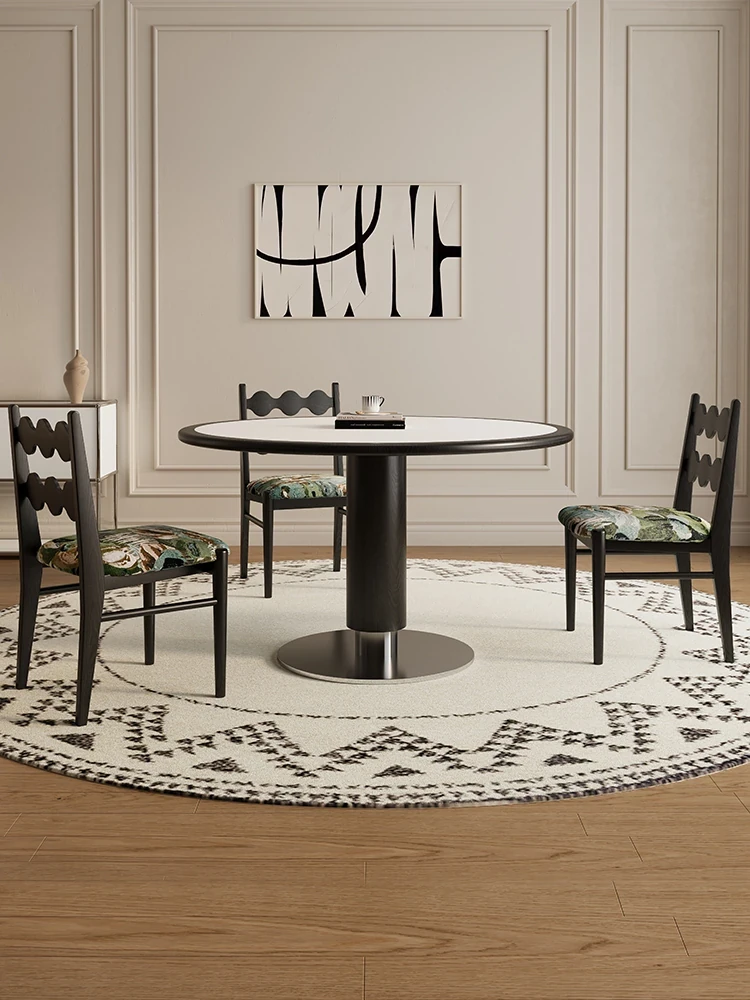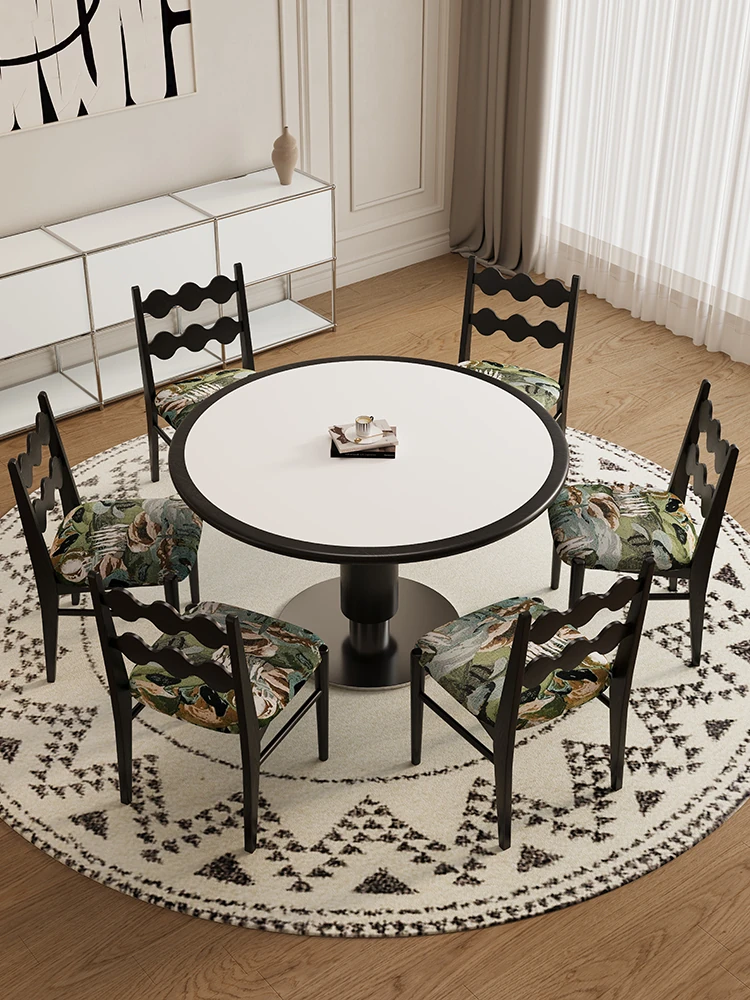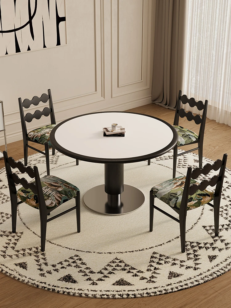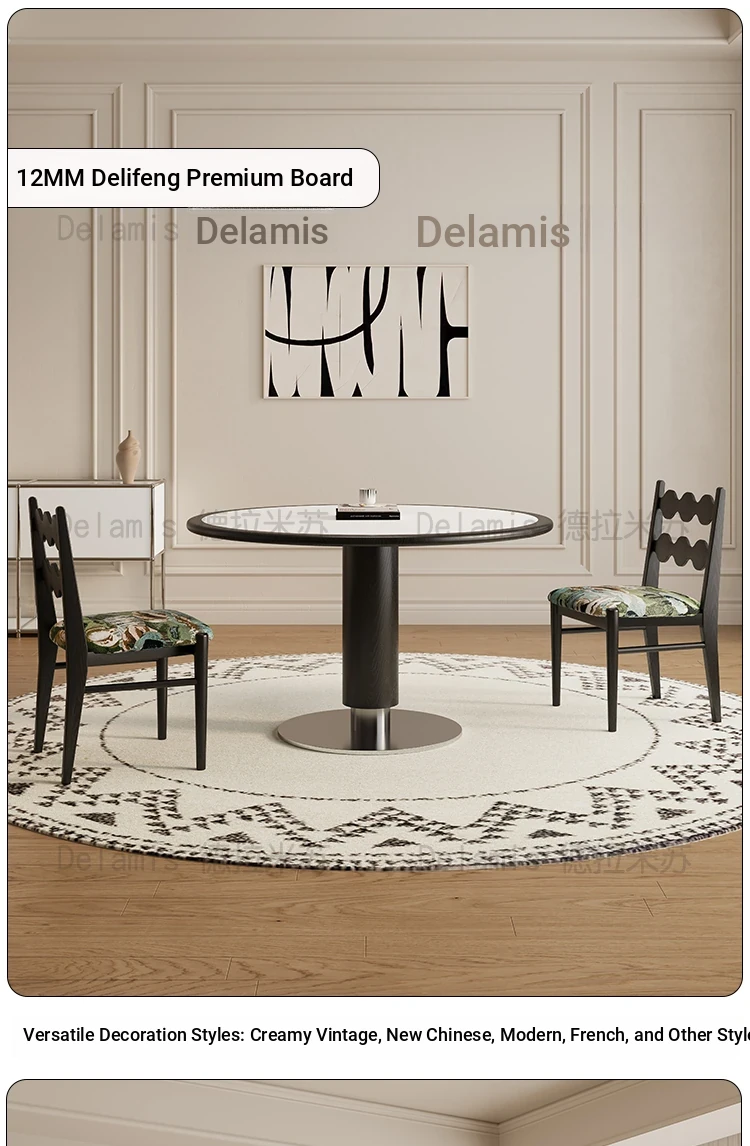 Delifeng Black Round Dining Table for Small Spaces - French Cream Vintage Style with Built-in Design, Perfect for Home Use