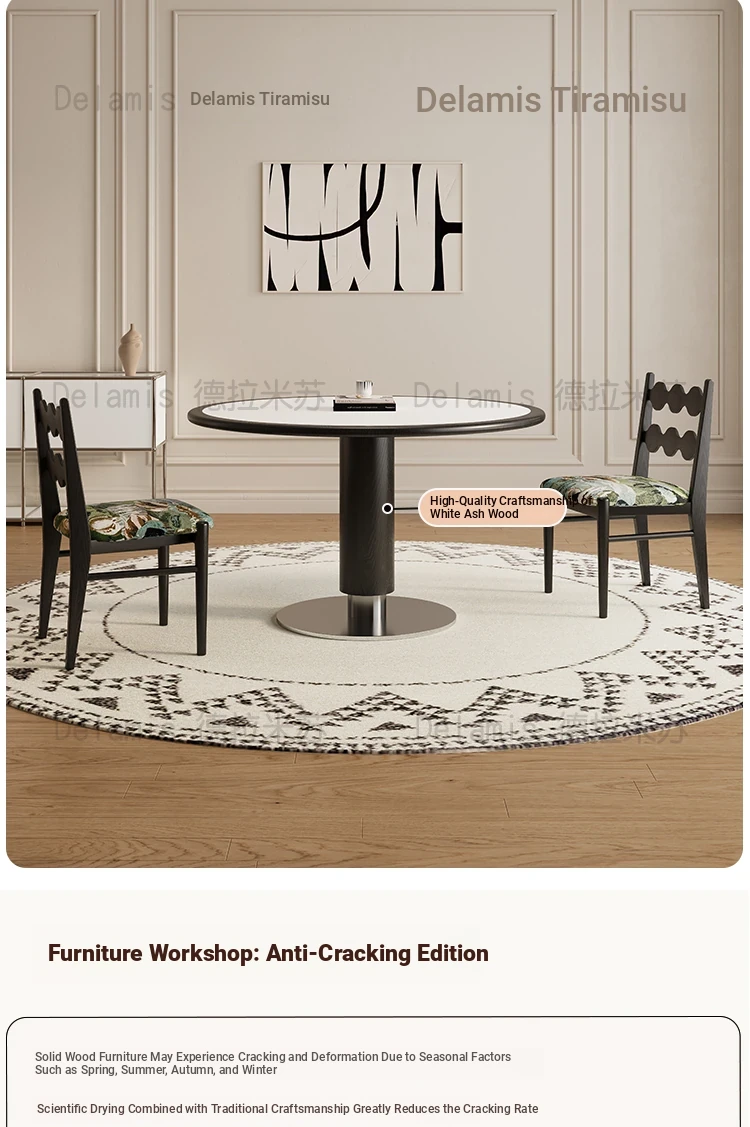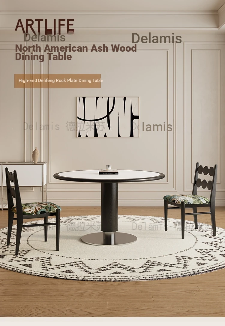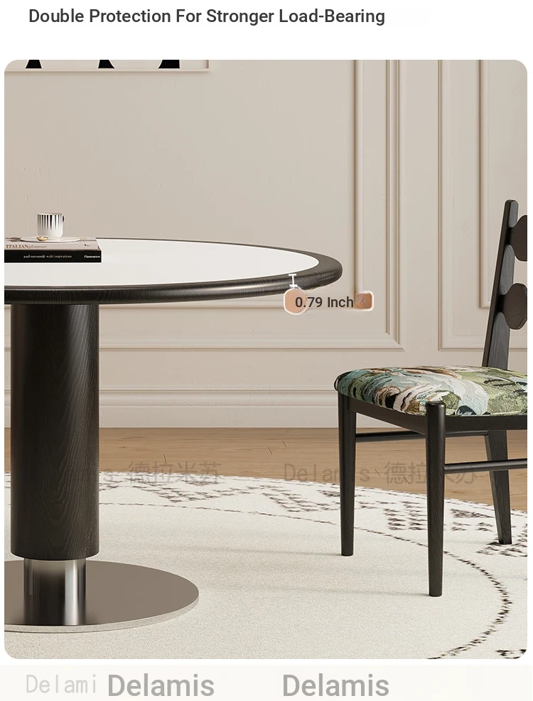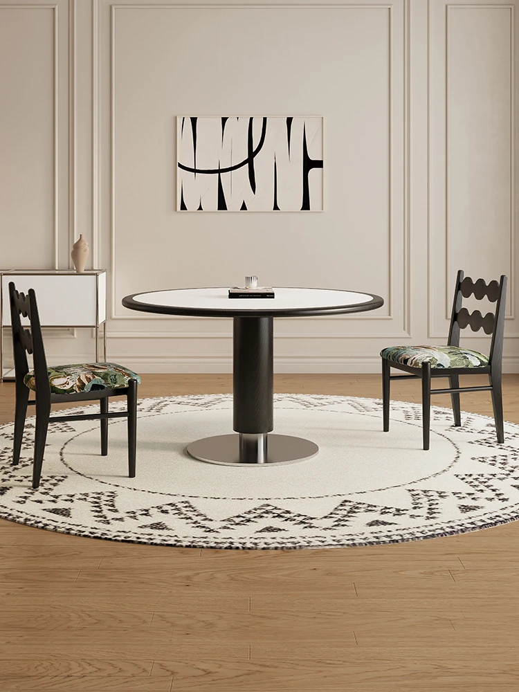 Delifeng Black Round Dining Table for Small Spaces - French Cream Vintage Style with Built-in Design, Perfect for Home Use
