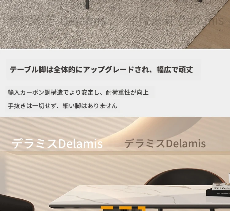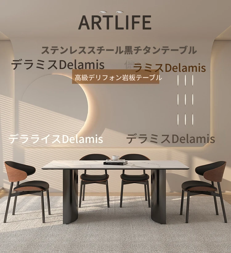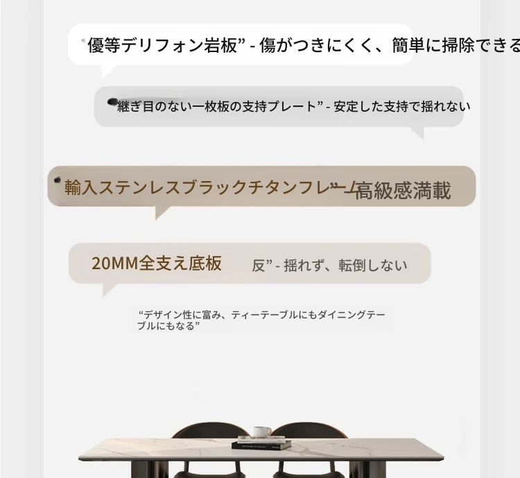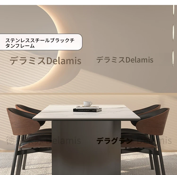 デリフォン ストーンテーブル 家庭用 長方形 モダンシンプル 小型向け 高級感 あふれる ステンレス製 ブラックチタン ダイニングテーブル