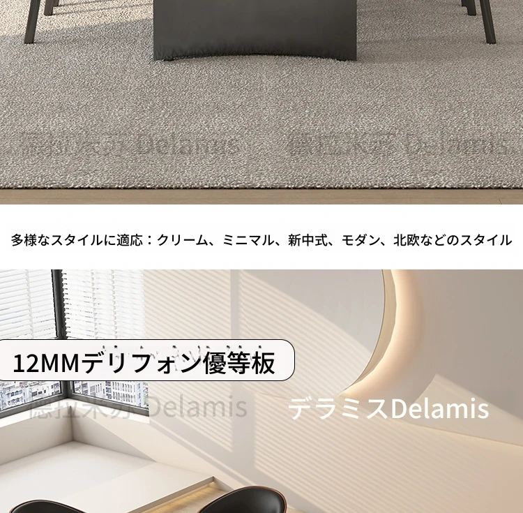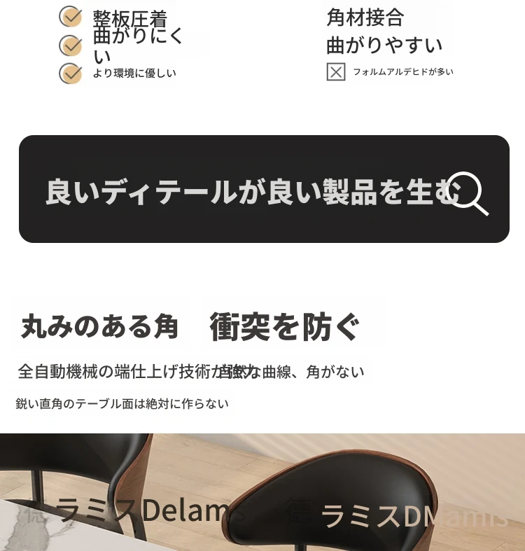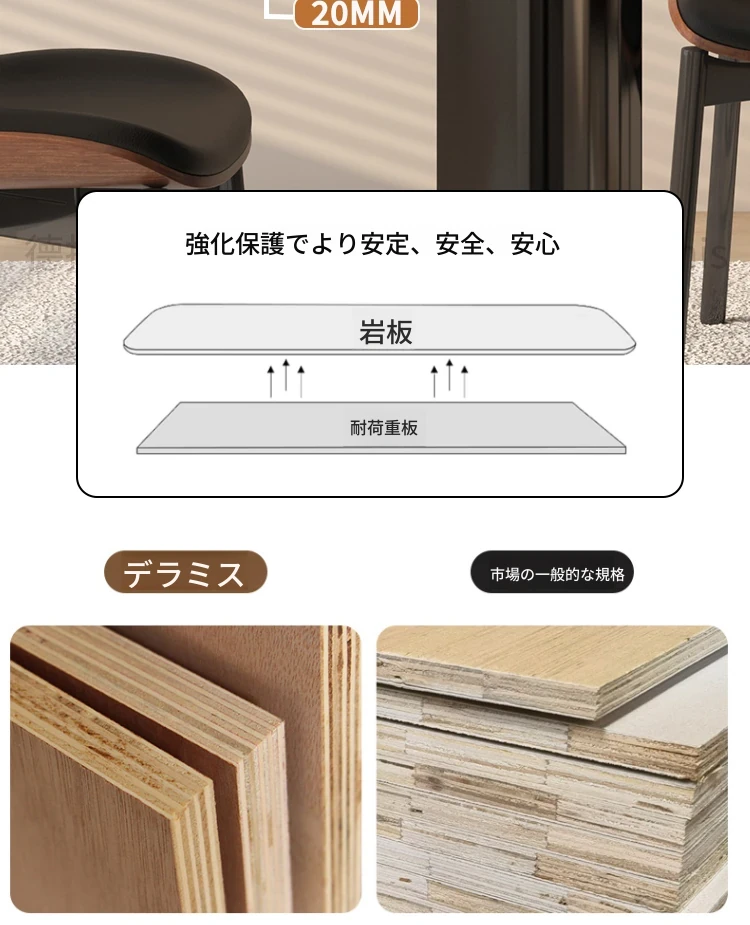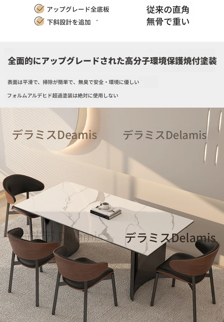 1.8メートルデリフォン岩板ダイニングテーブル+無垢材ダイニングチェア*4