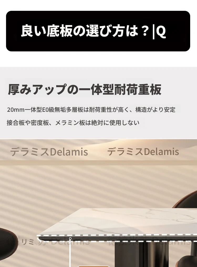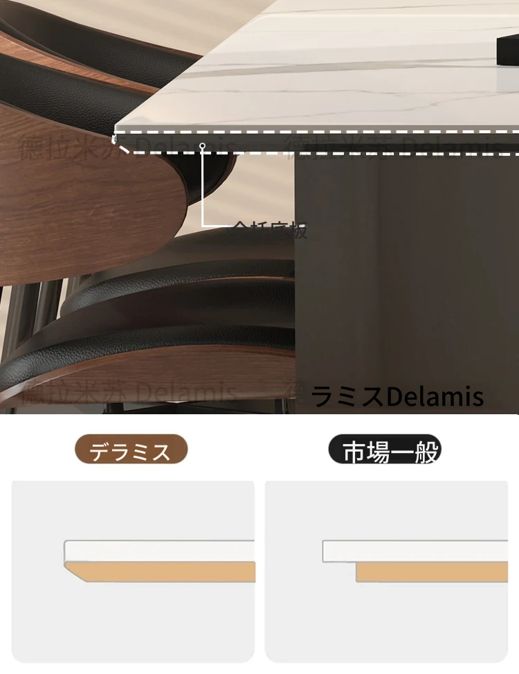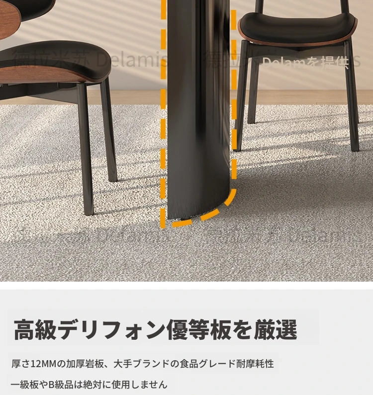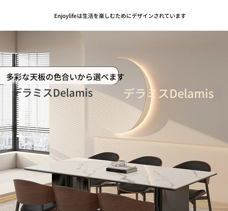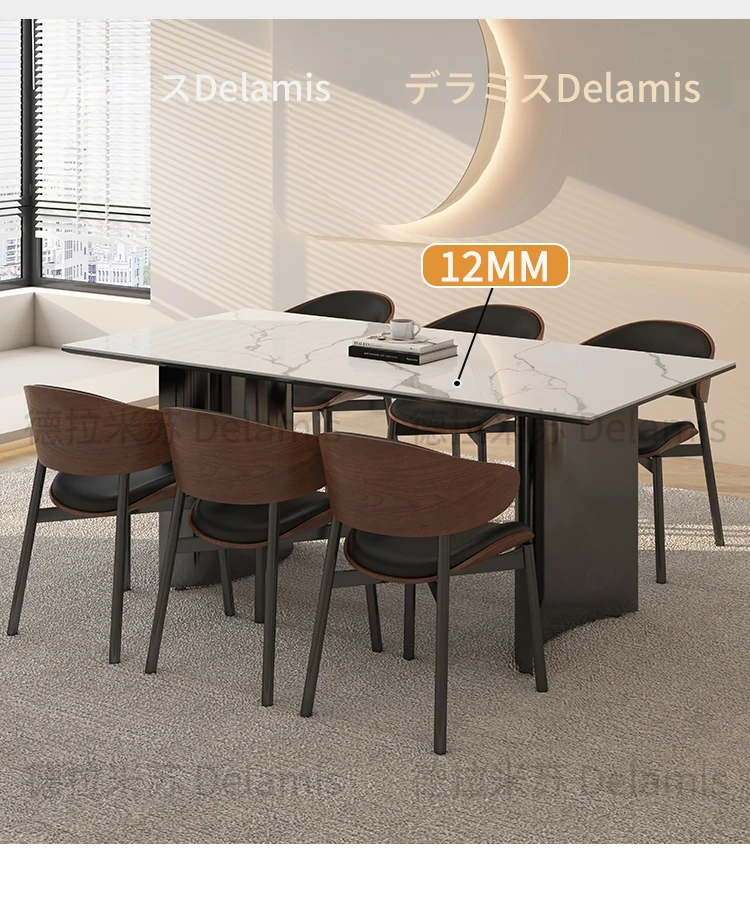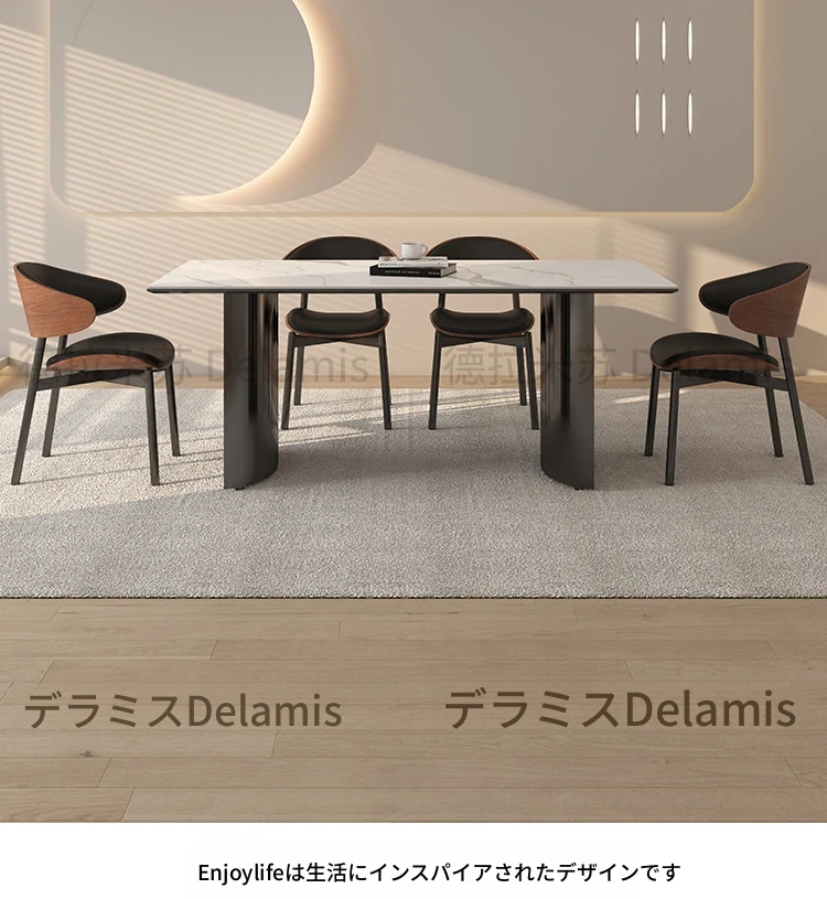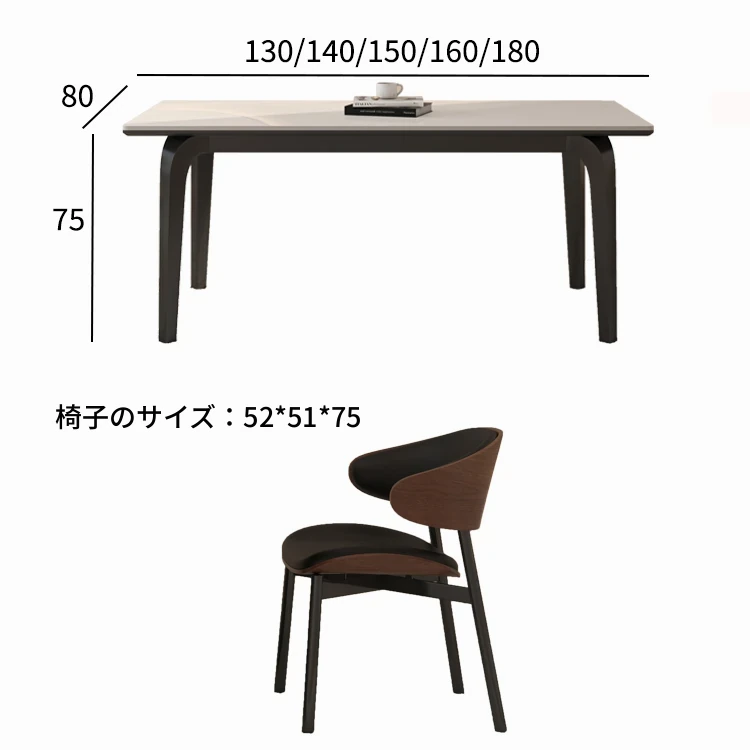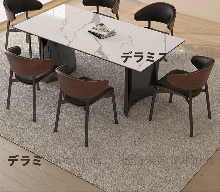 1.5メートルデリフォン岩板ダイニングテーブル+無垢材ダイニングチェア*6