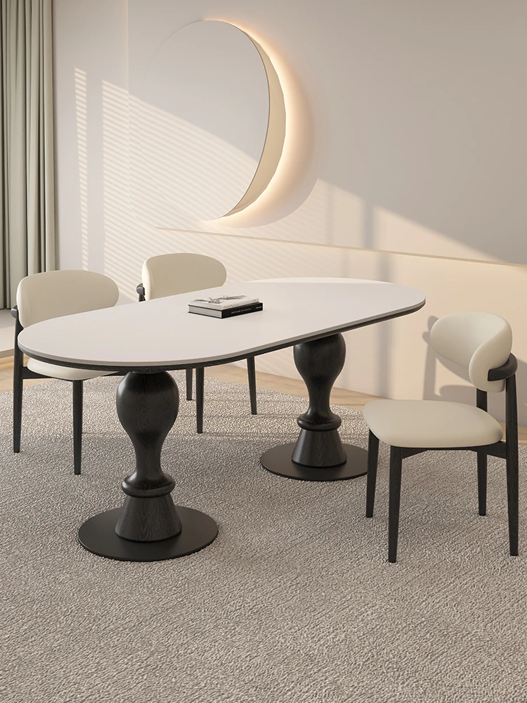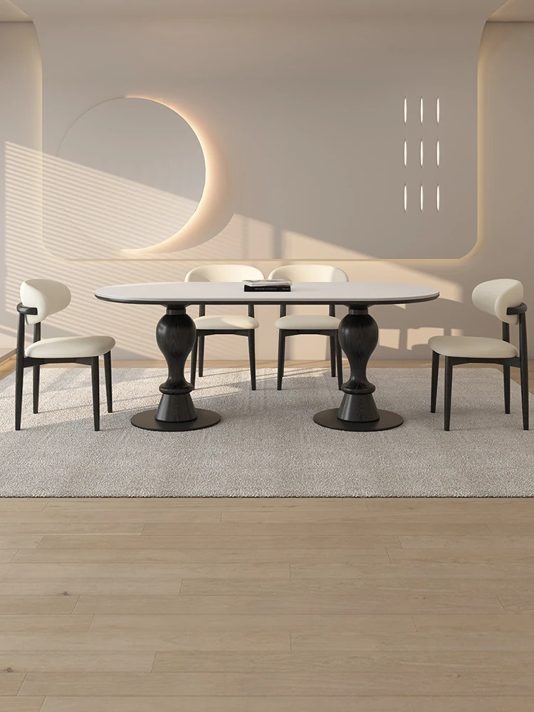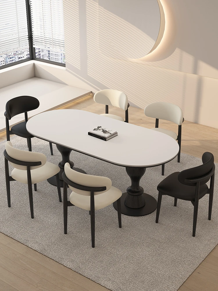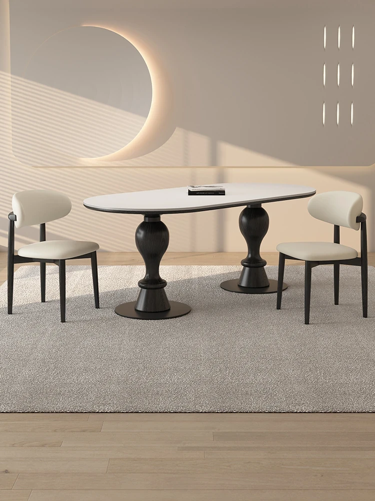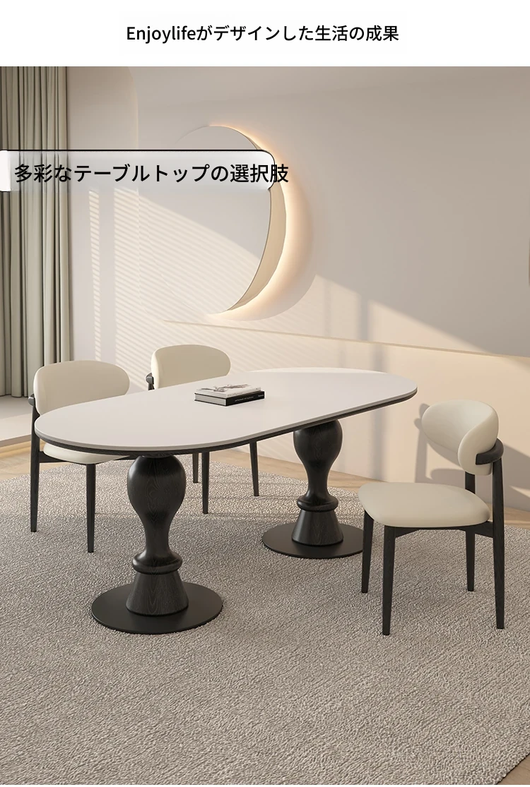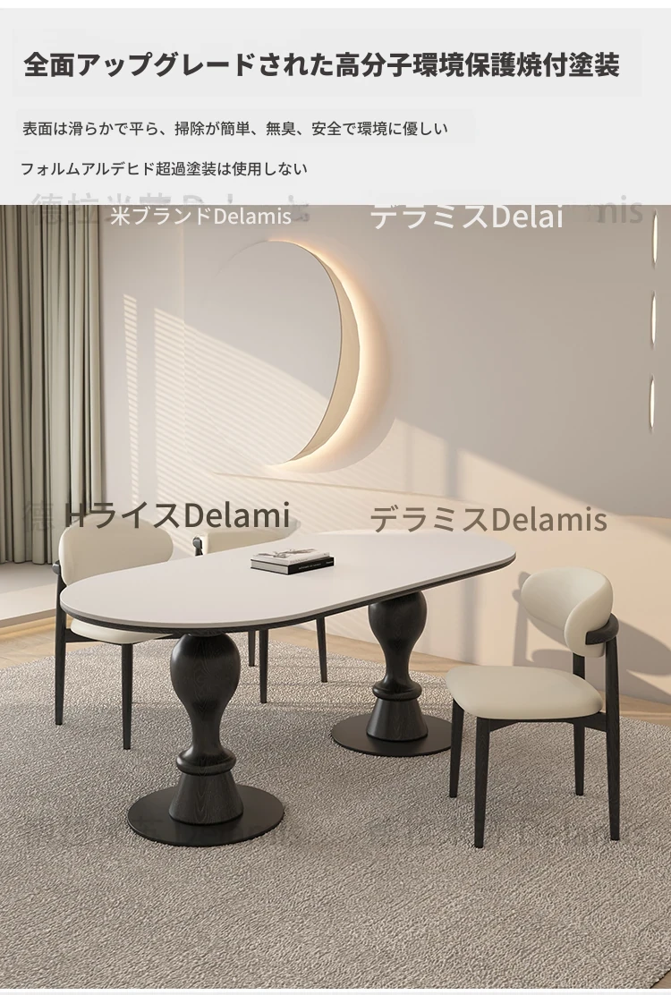 デリフォン無垢材ロックボードダイニングテーブル - 小型住宅にぴったりなクリーム色のヴィンテージ風高級感あふれるブラック長方形テーブル。おしゃれで機能的な空間を演出します!