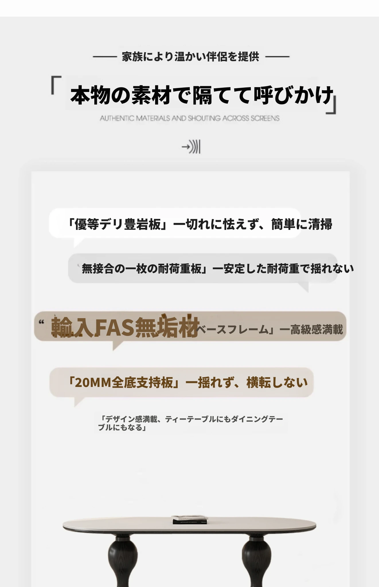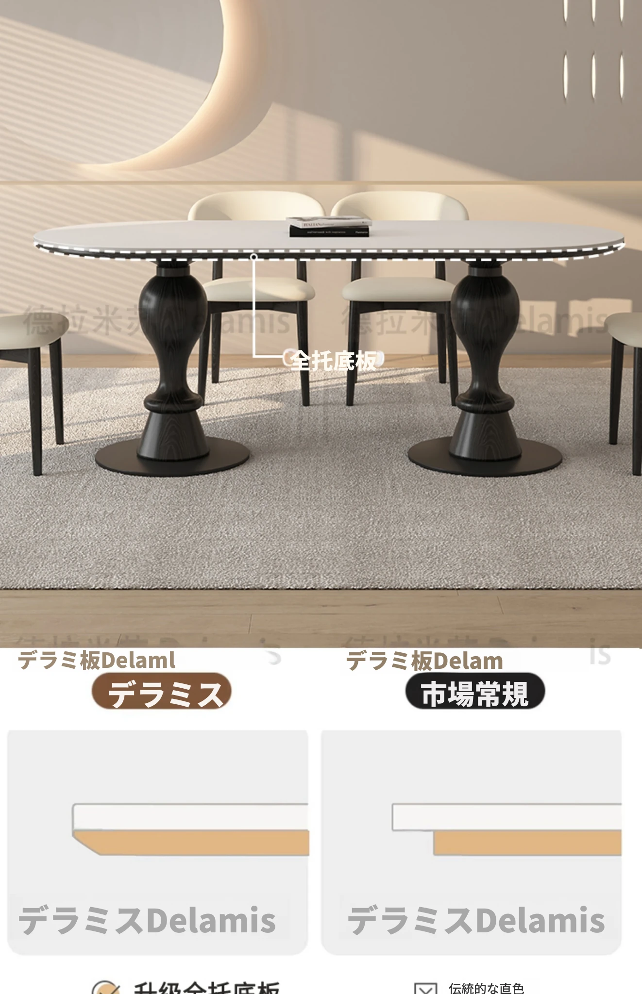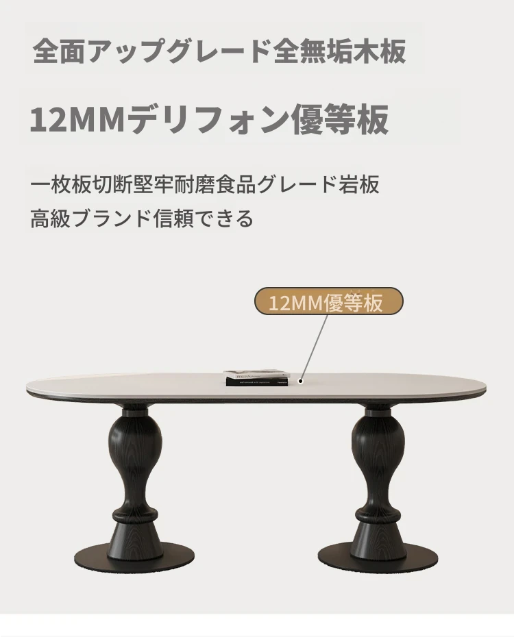 1.8*0.8メートル【高級デリフォン岩板】+無垢材ダイニングチェア*6