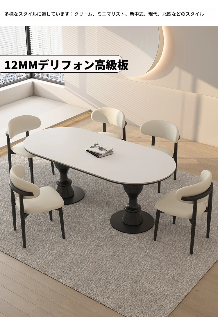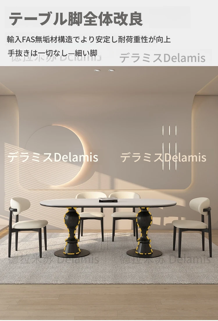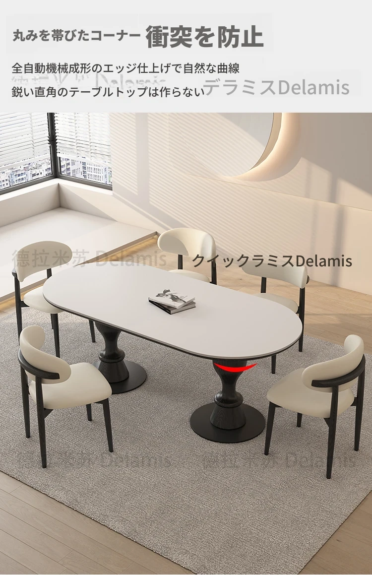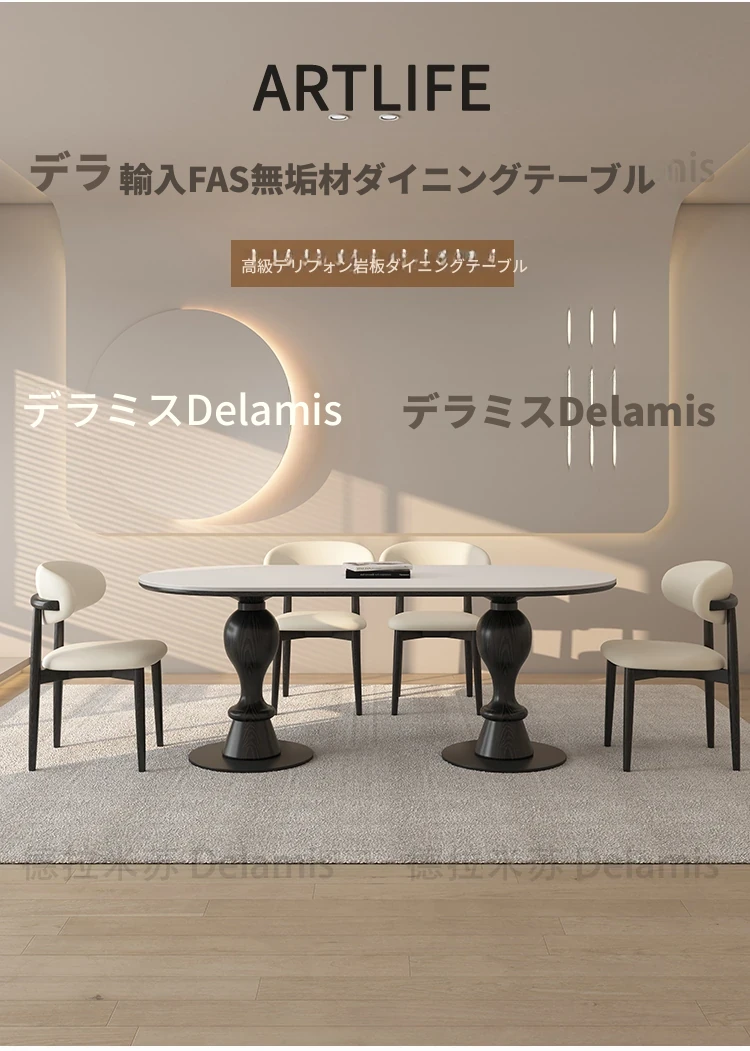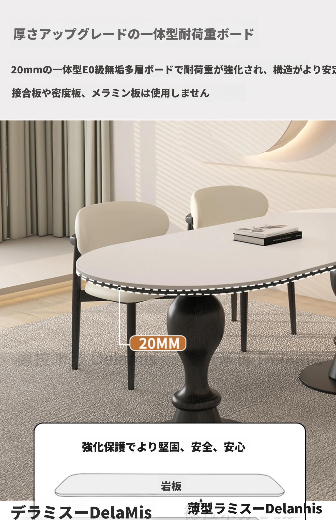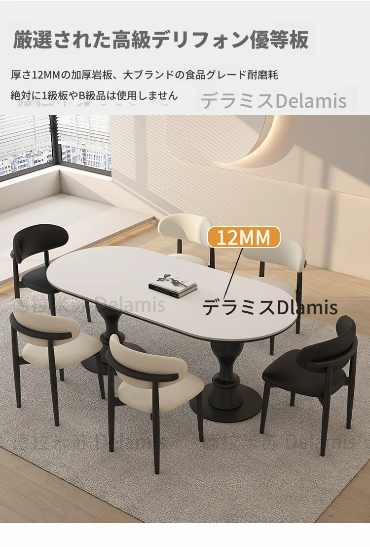 1.5*0.8メートル【高級デリフォン岩板】+無垢材ダイニングチェア*6