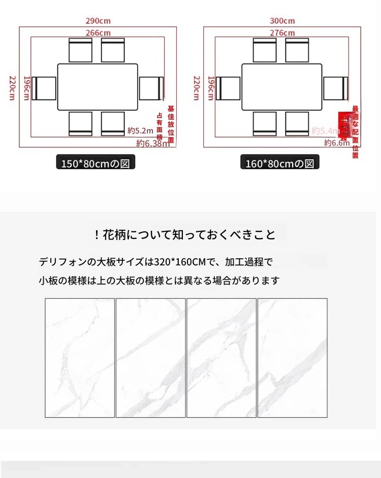 1.6*0.8メートル【高級デリフォン岩板】+無垢材ダイニングチェア*4