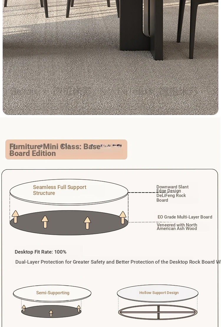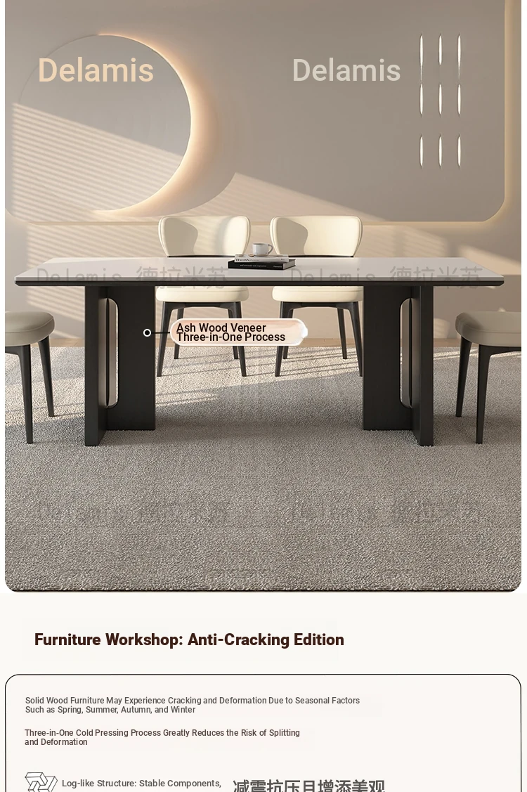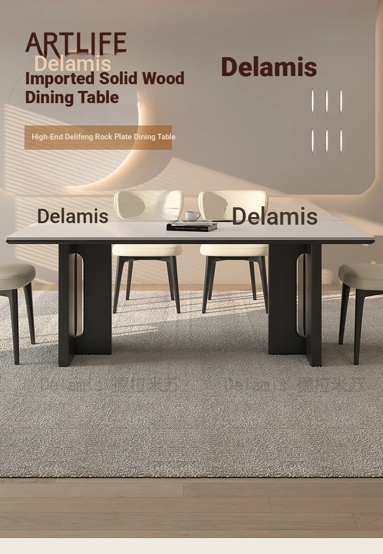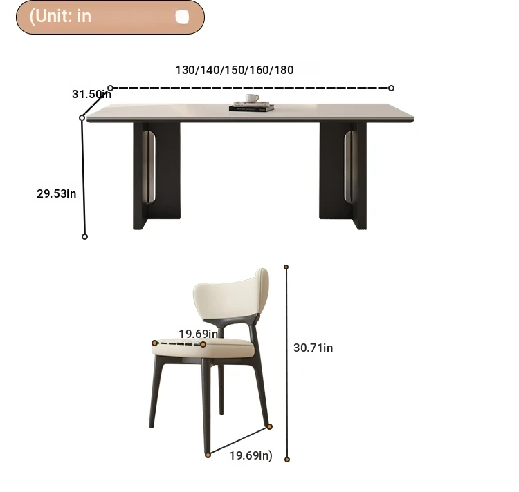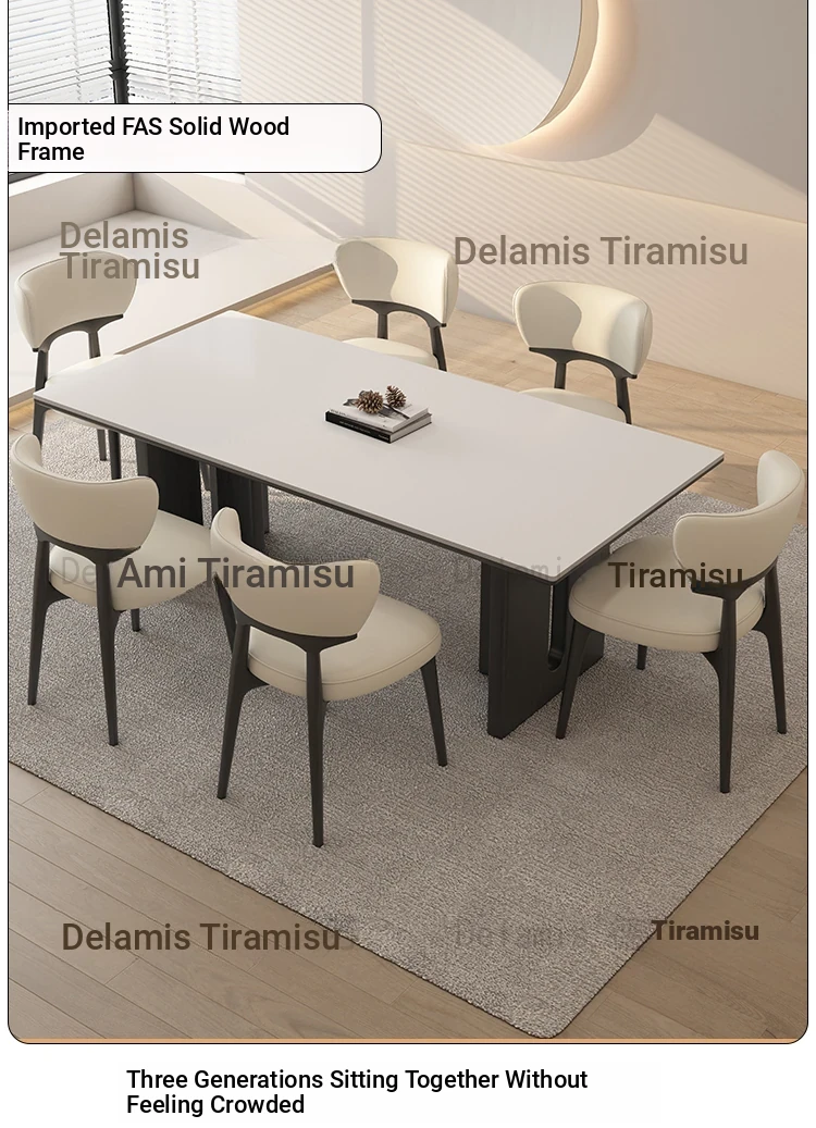 55.12in*31.50in [Classy Delifeng Rock Plate] + Solid Wood Dining Chair * 6