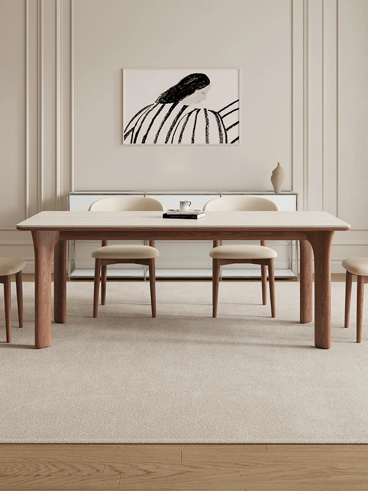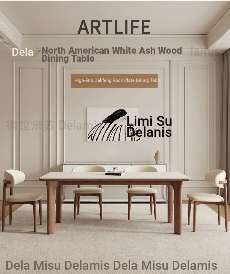 Delifeng Solid Wood Dining Table - French Vintage Style Rectangular Table for Small Spaces, Made of Ash Wood, Perfect for Home Dining