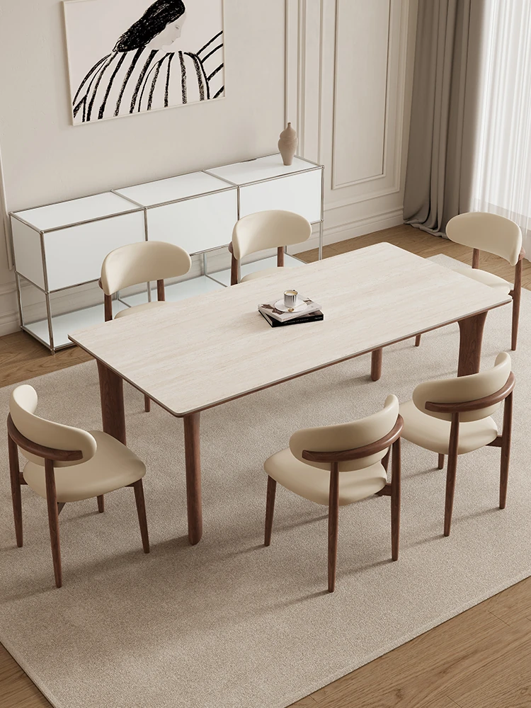59.06in*31.50in [Classy Delifeng Rock Plate] + Solid Wood Dining Chair * 6