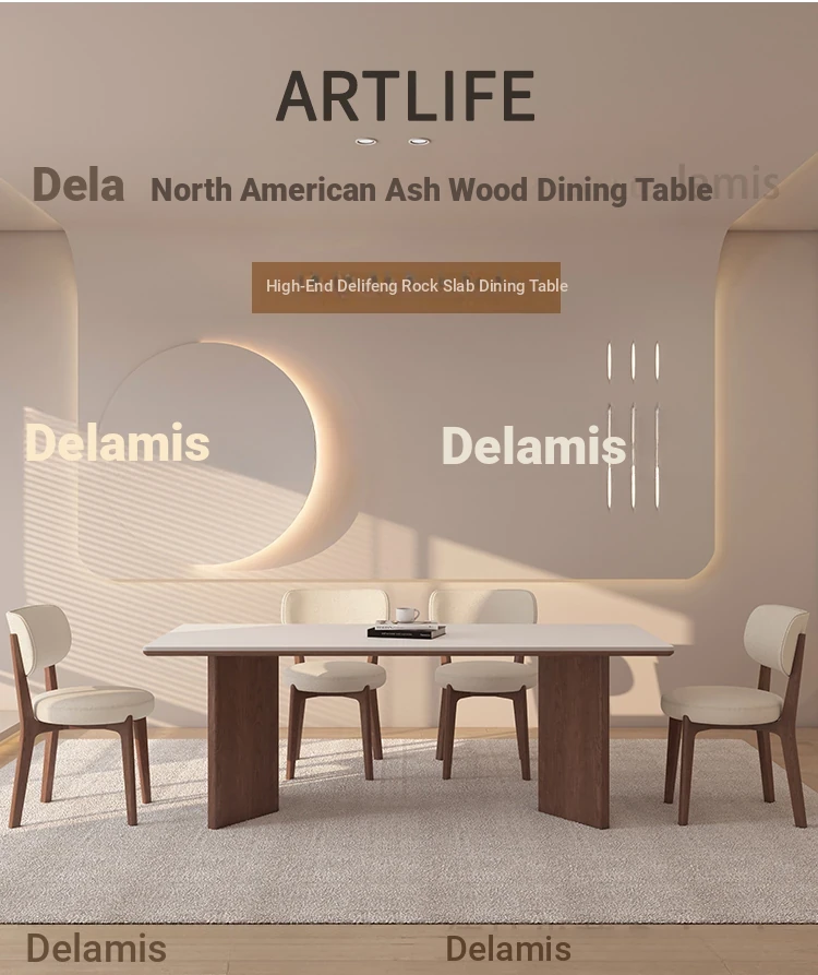 55.12in*31.50in [Classy Delifeng Rock Plate] + Solid Wood Dining Chair * 6