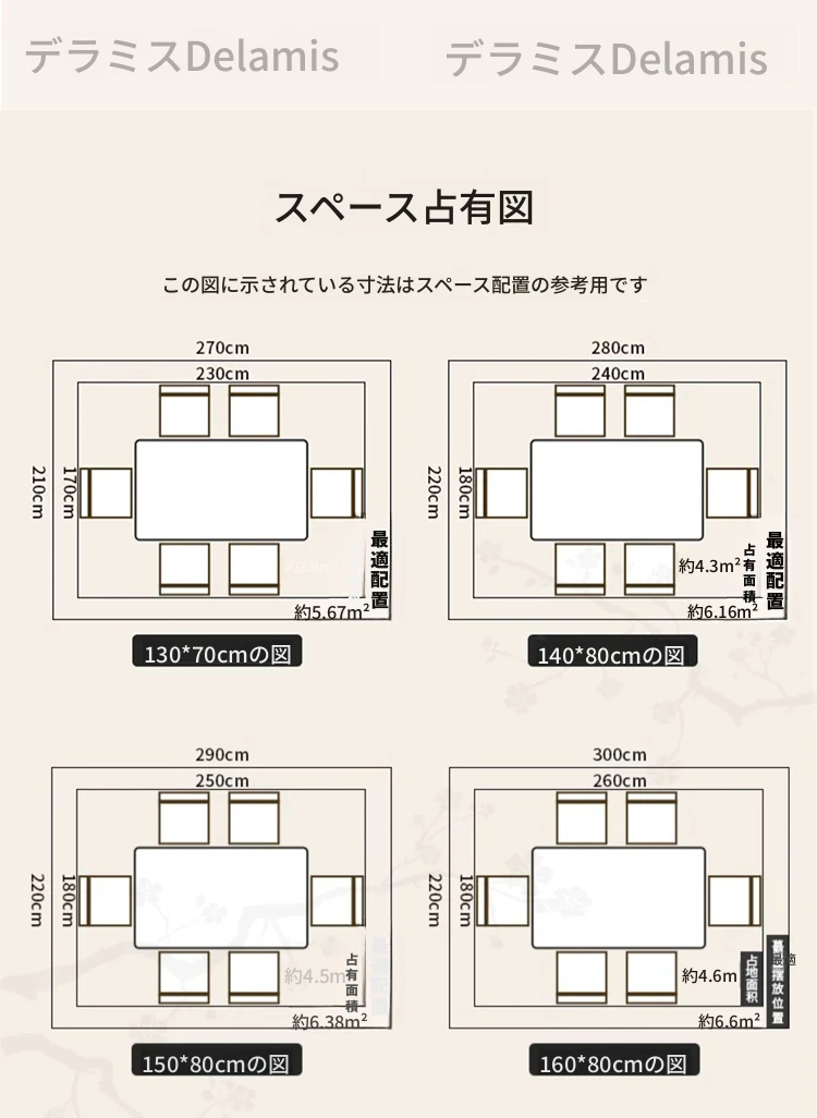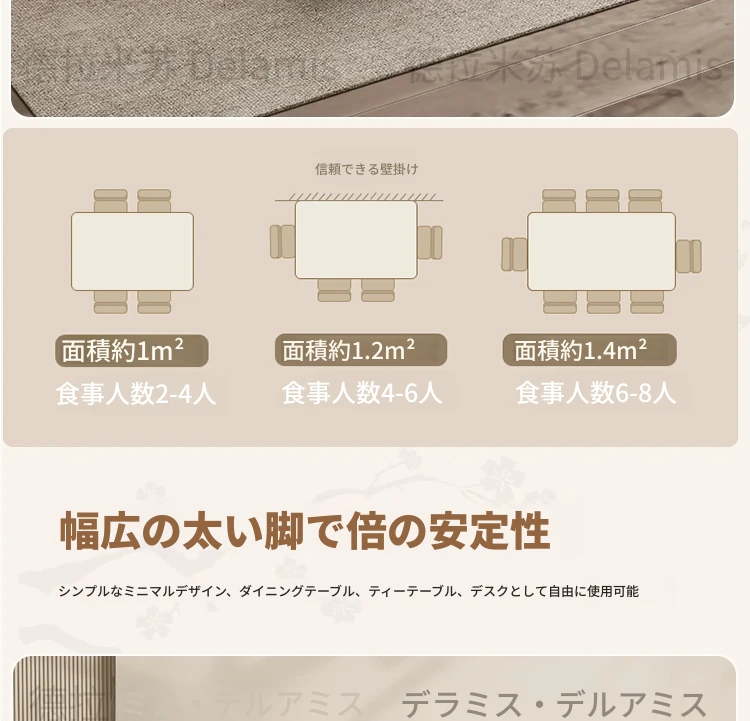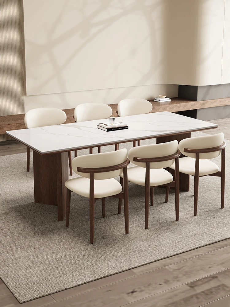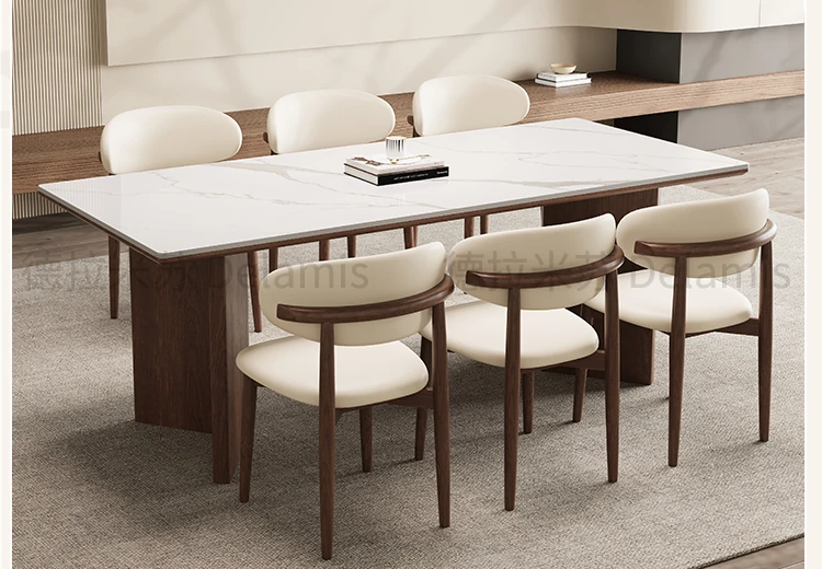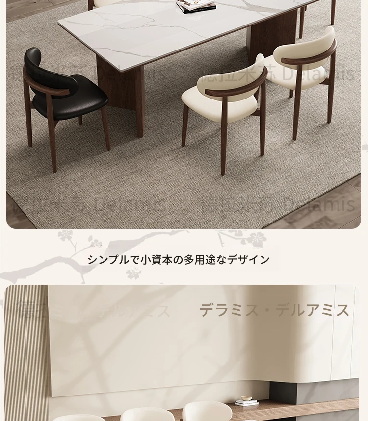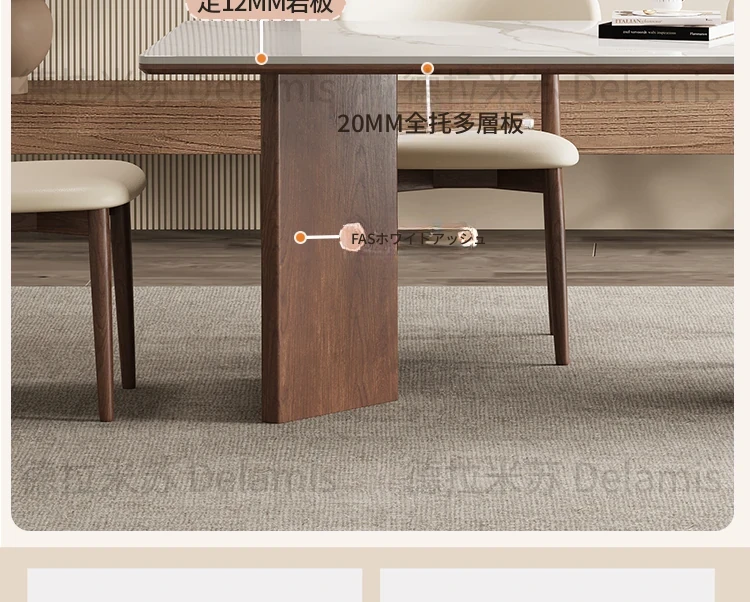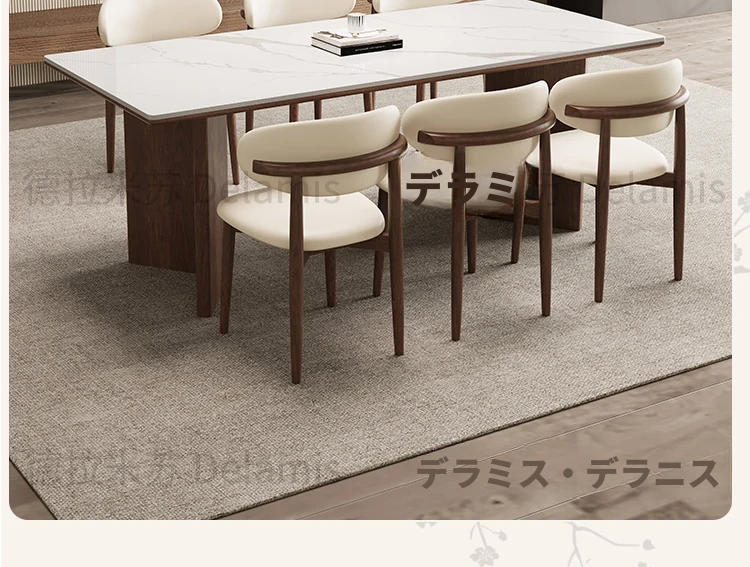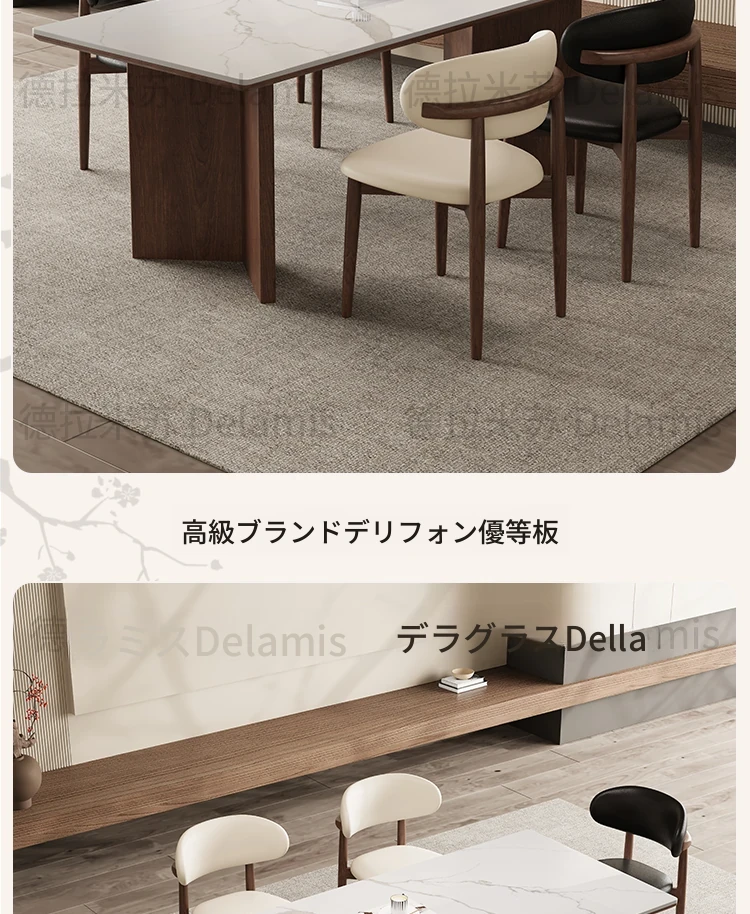 1.3*0.8メートル【高級デリフォン岩板】+無垢材ダイニングチェア*6