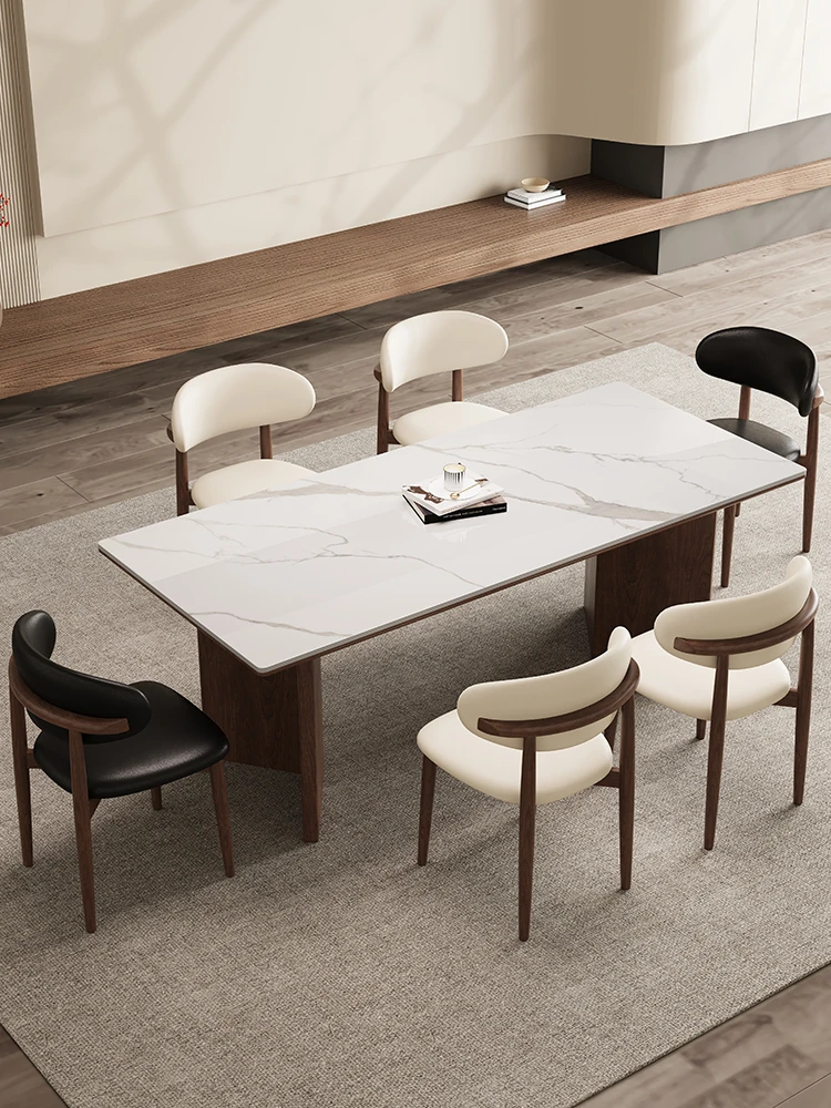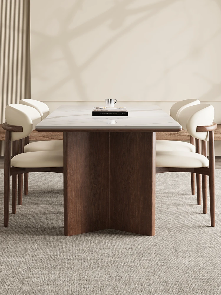 デリフォン無垢材ロックボードダイニングテーブル ブラックウォールナット 新中式・アンティークスタイル 高級全托長方形 食事テーブル 風格と機能性を兼ね備えた上質な一品!