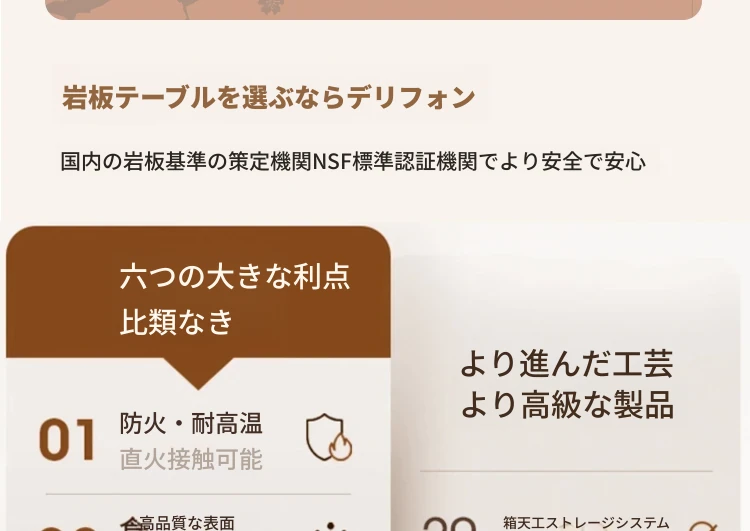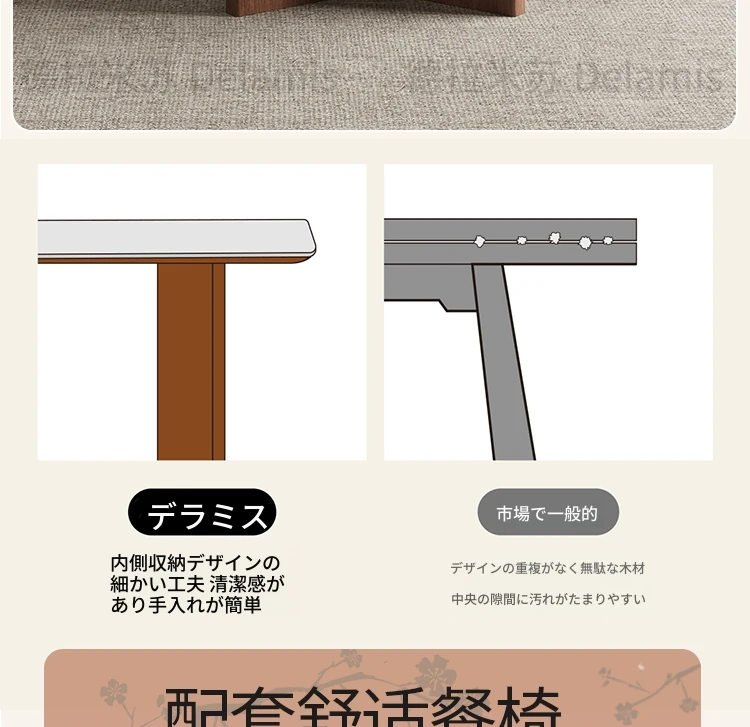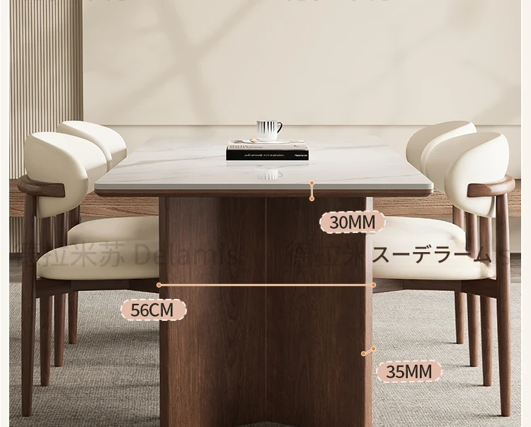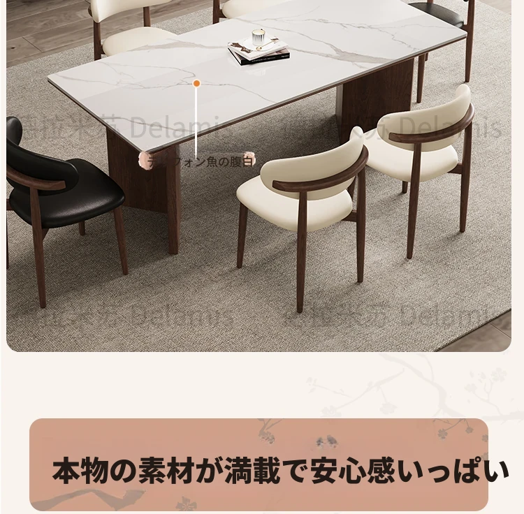 1.5*0.8メートル【高級デリフォン岩板】+無垢材ダイニングチェア*6
