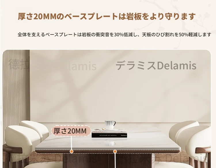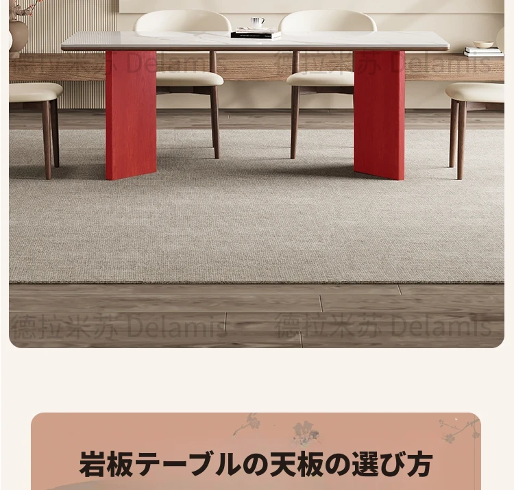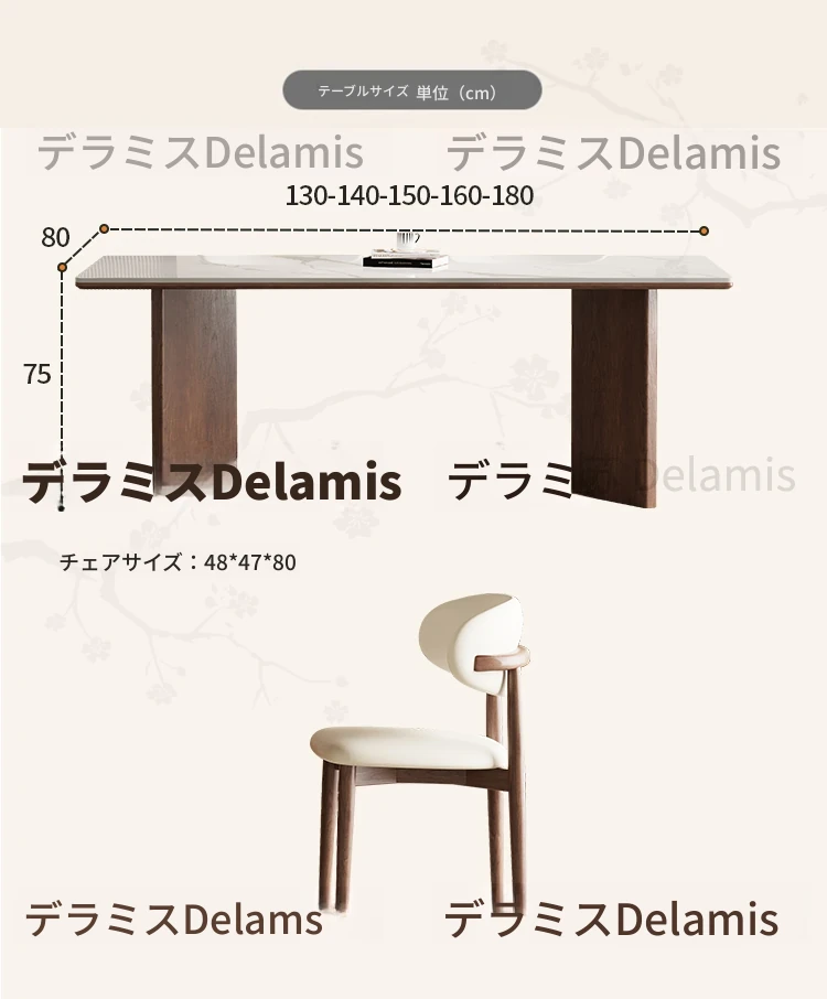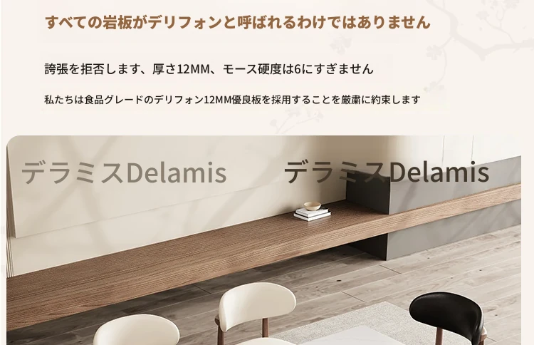 1.8*0.8メートル【高級デリフォン岩板】+無垢材ダイニングチェア*6