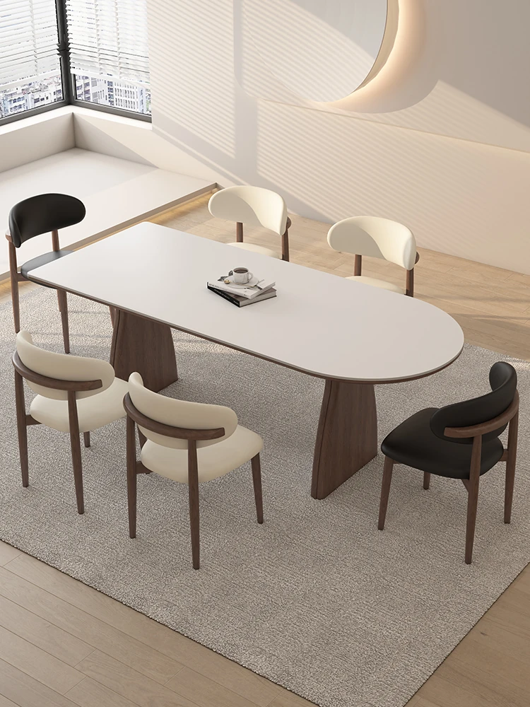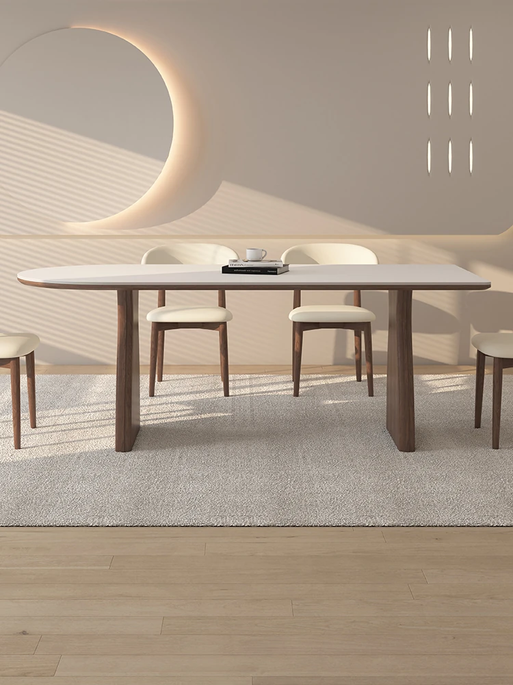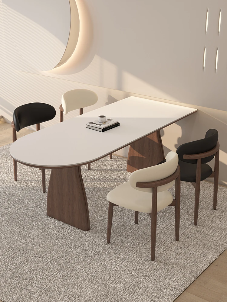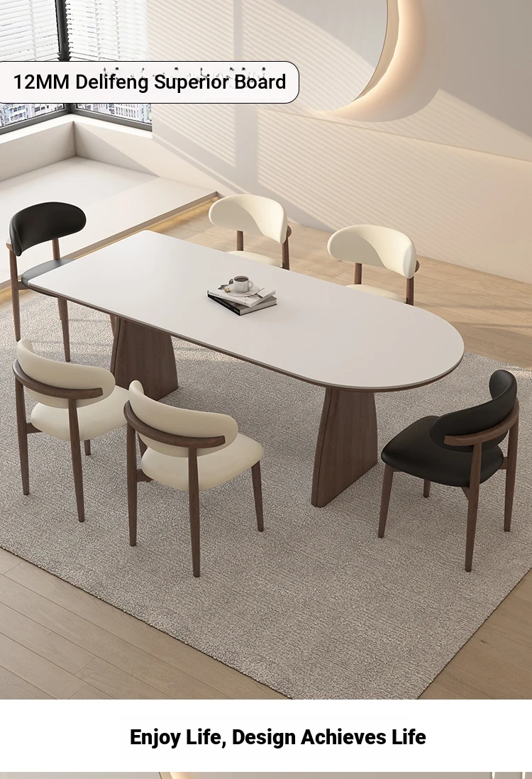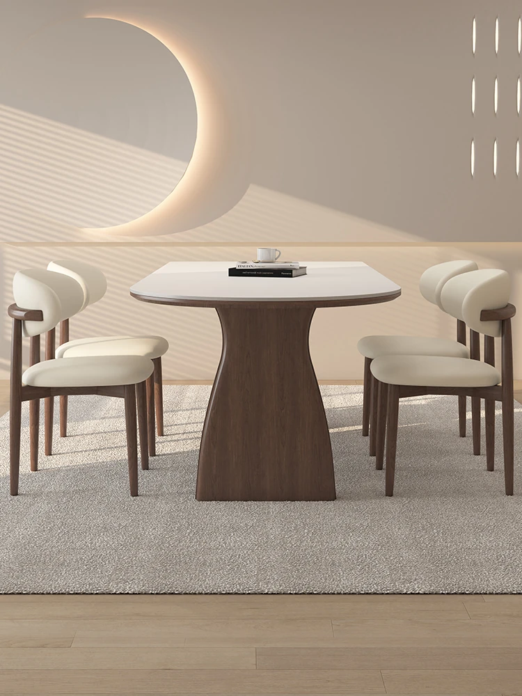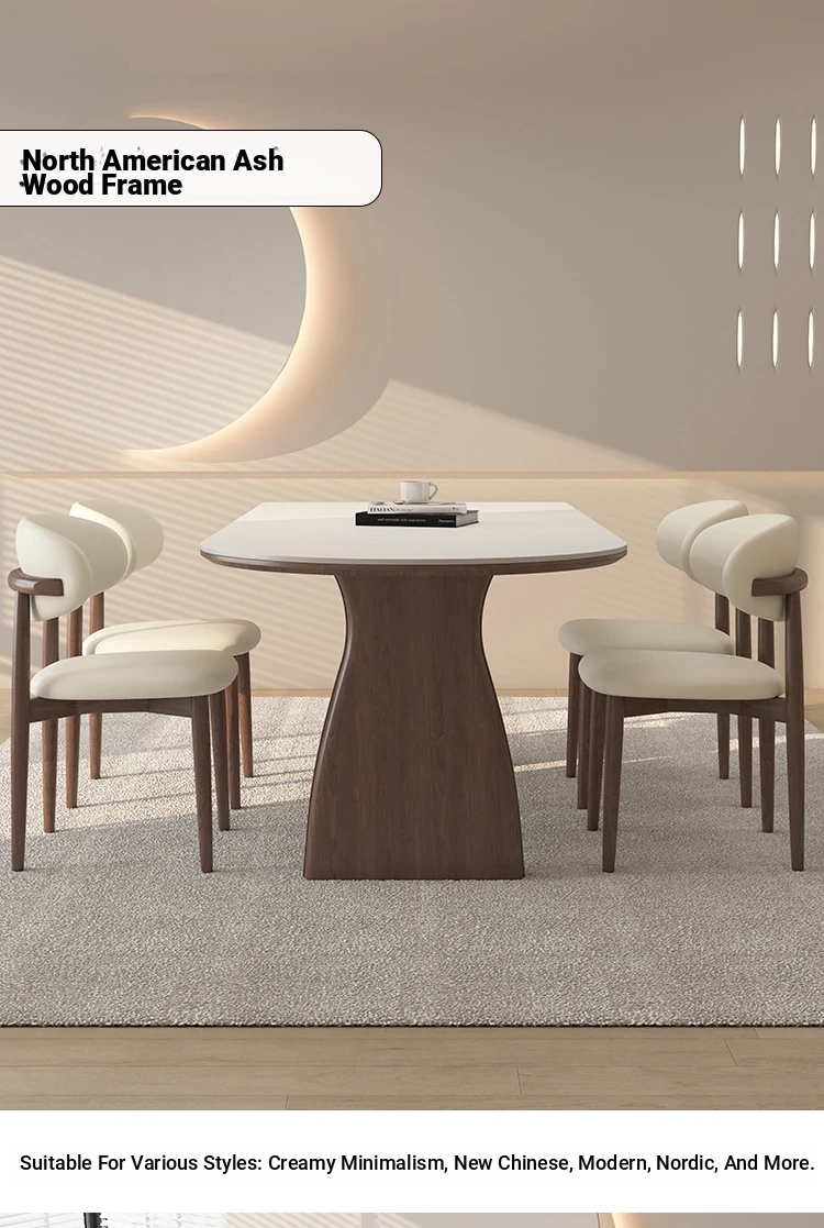 Delifeng Solid Wood Rock Panel Dining Table - French Cream Vintage Style Irregular Island Table for Small Spaces - Perfect for Cozy Dining Experiences