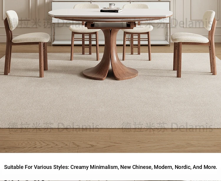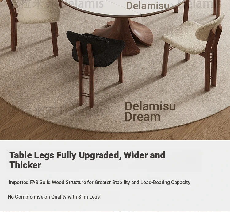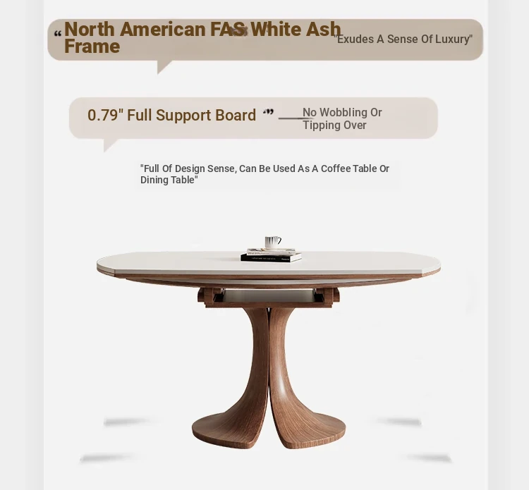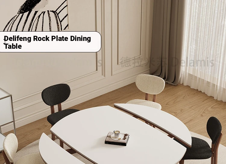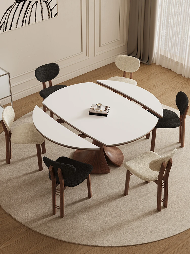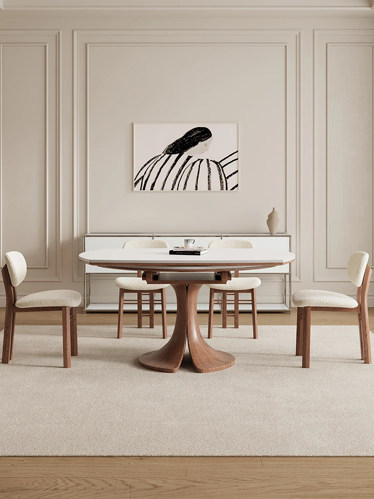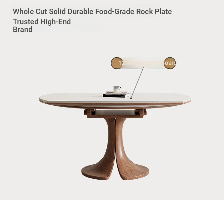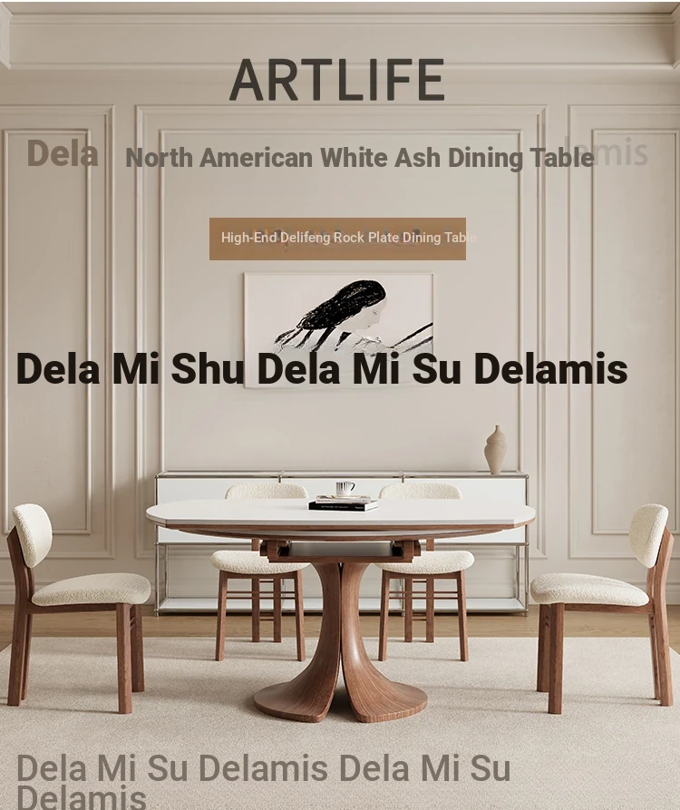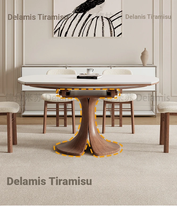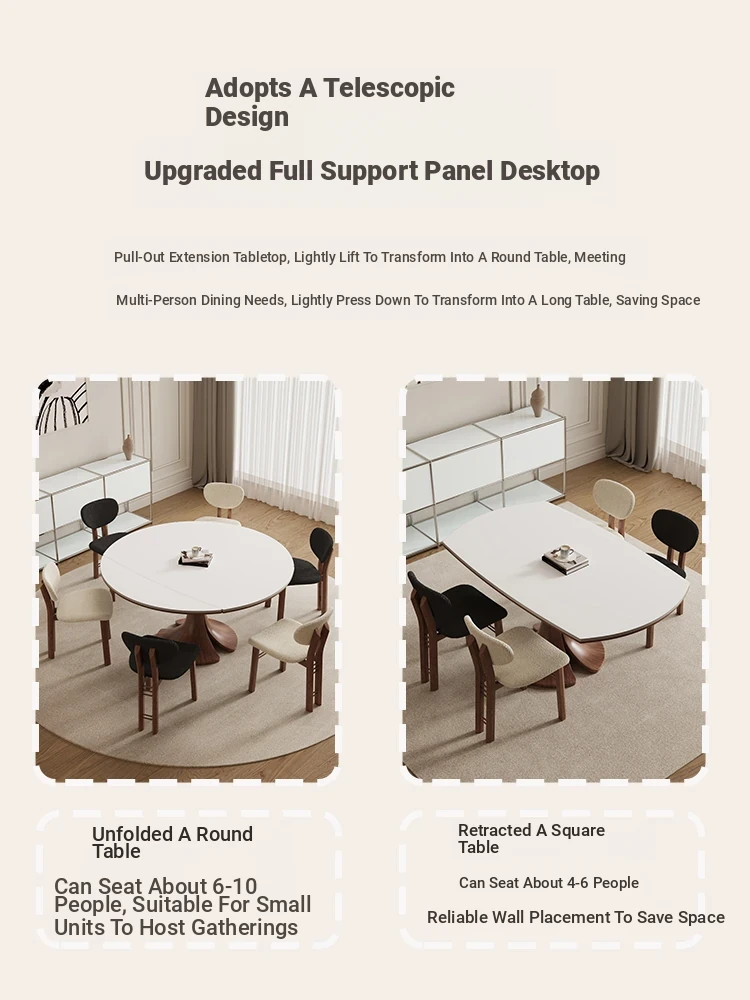Delifeng Solid Wood Rock Plate Dining Table - Expandable, Space-Saving Design for Small Homes, French Vintage Style, Elegant Square & Round Convertible Dining Table for High-End Living