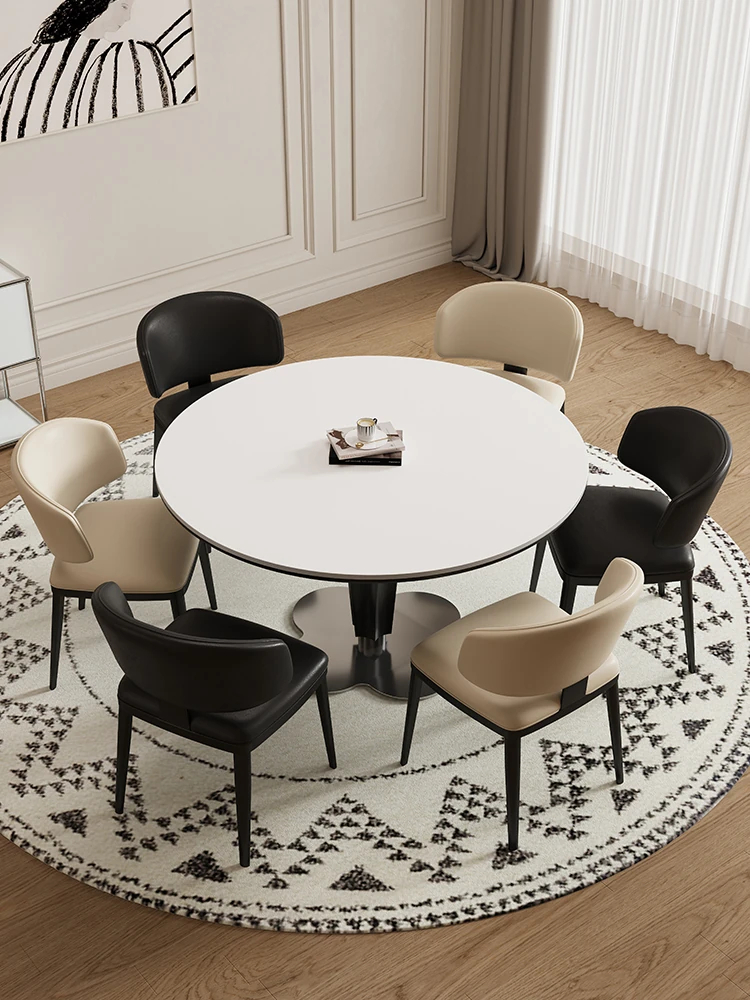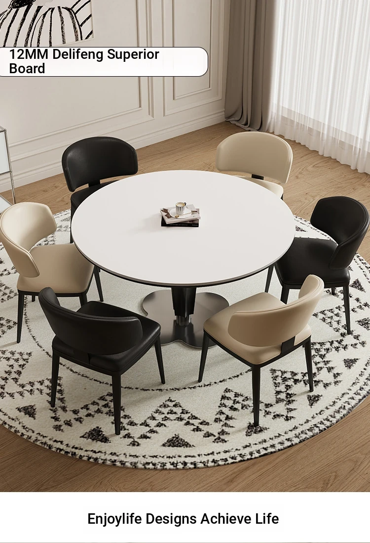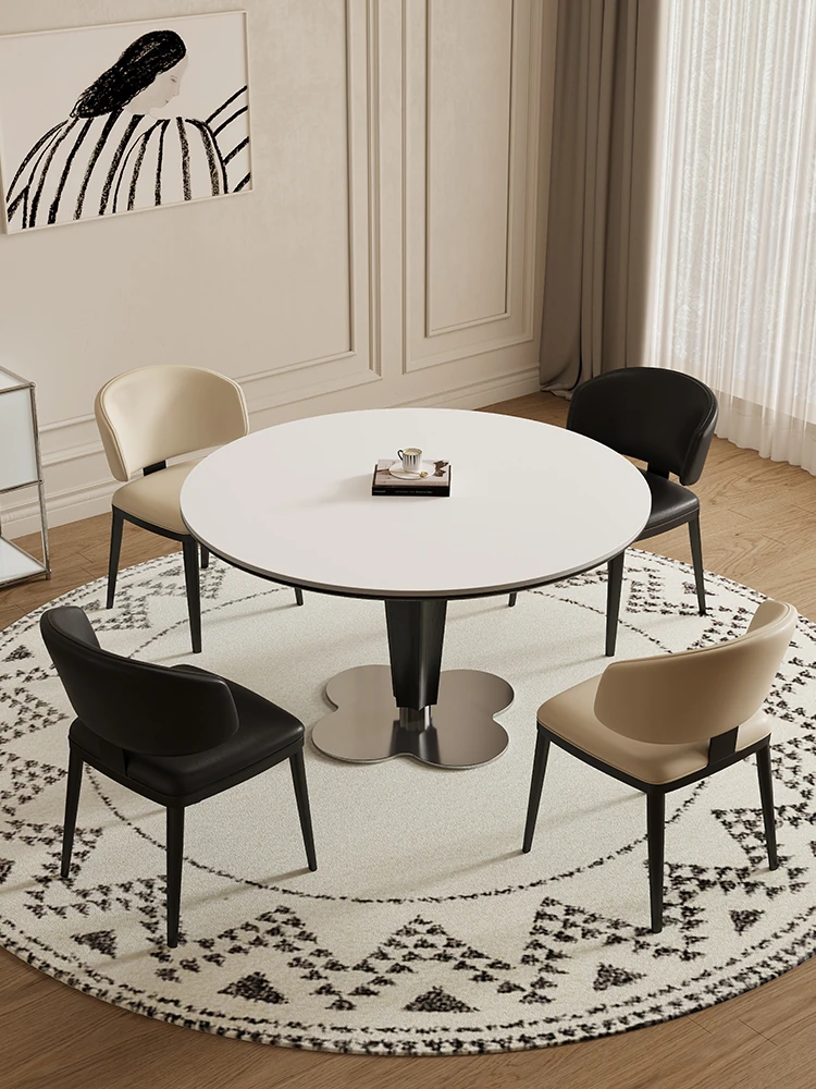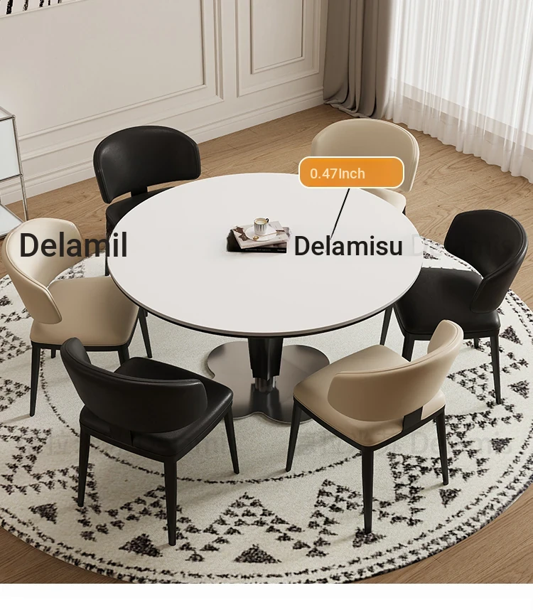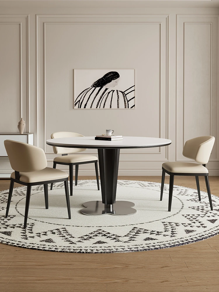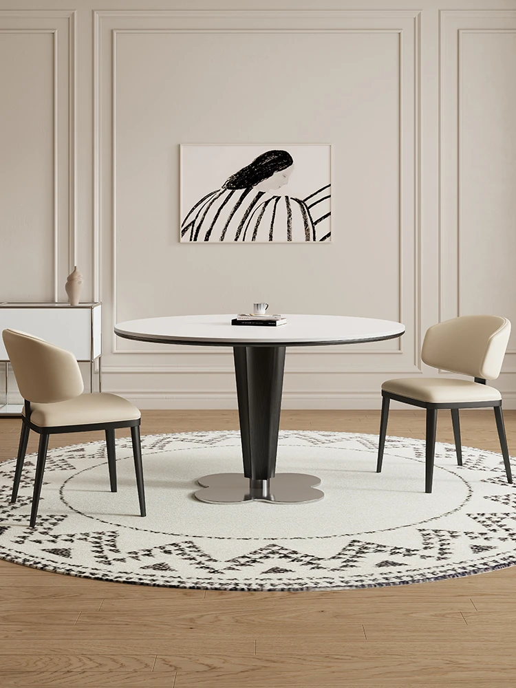 Delifeng Solid Wood Rock Plate Dining Table - French Cream Vintage Round Designer Table for Small Spaces - Perfect for Cozy Dining Experiences
