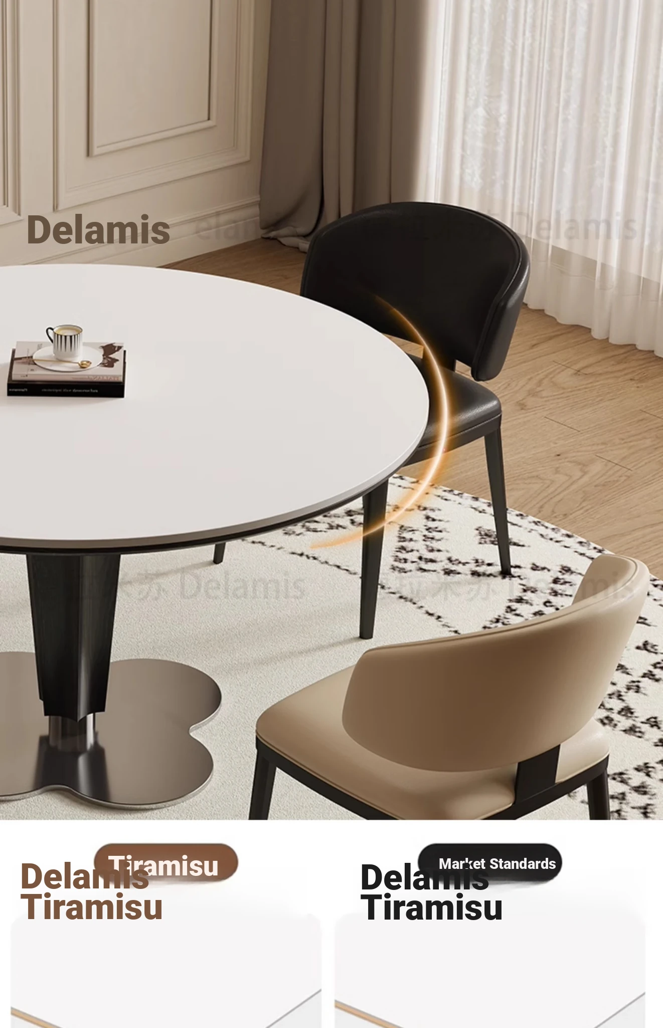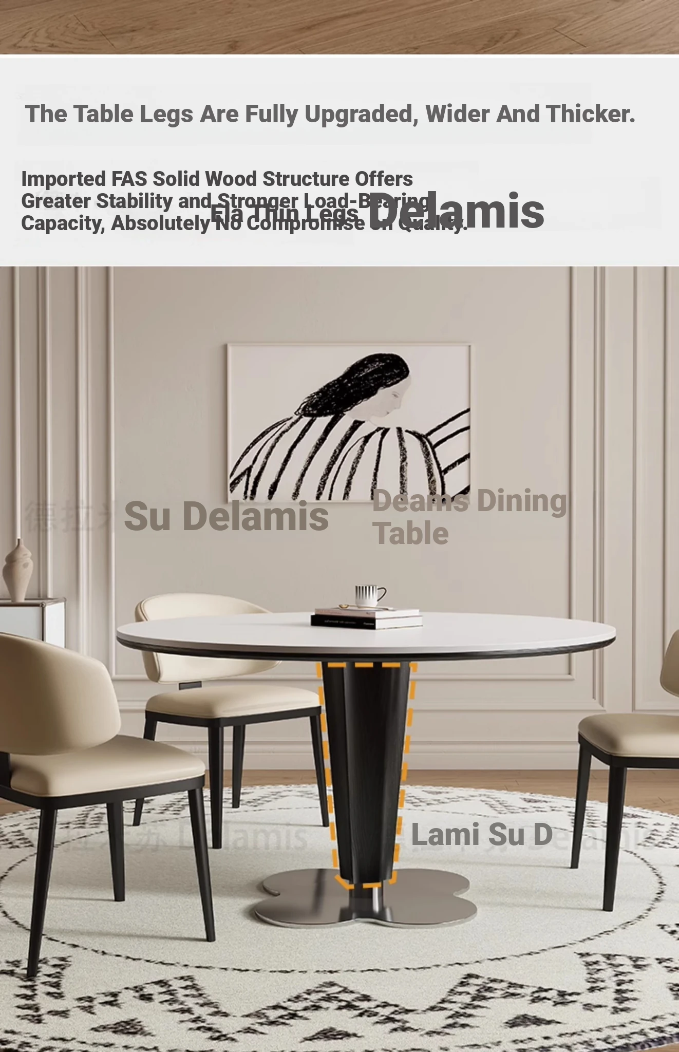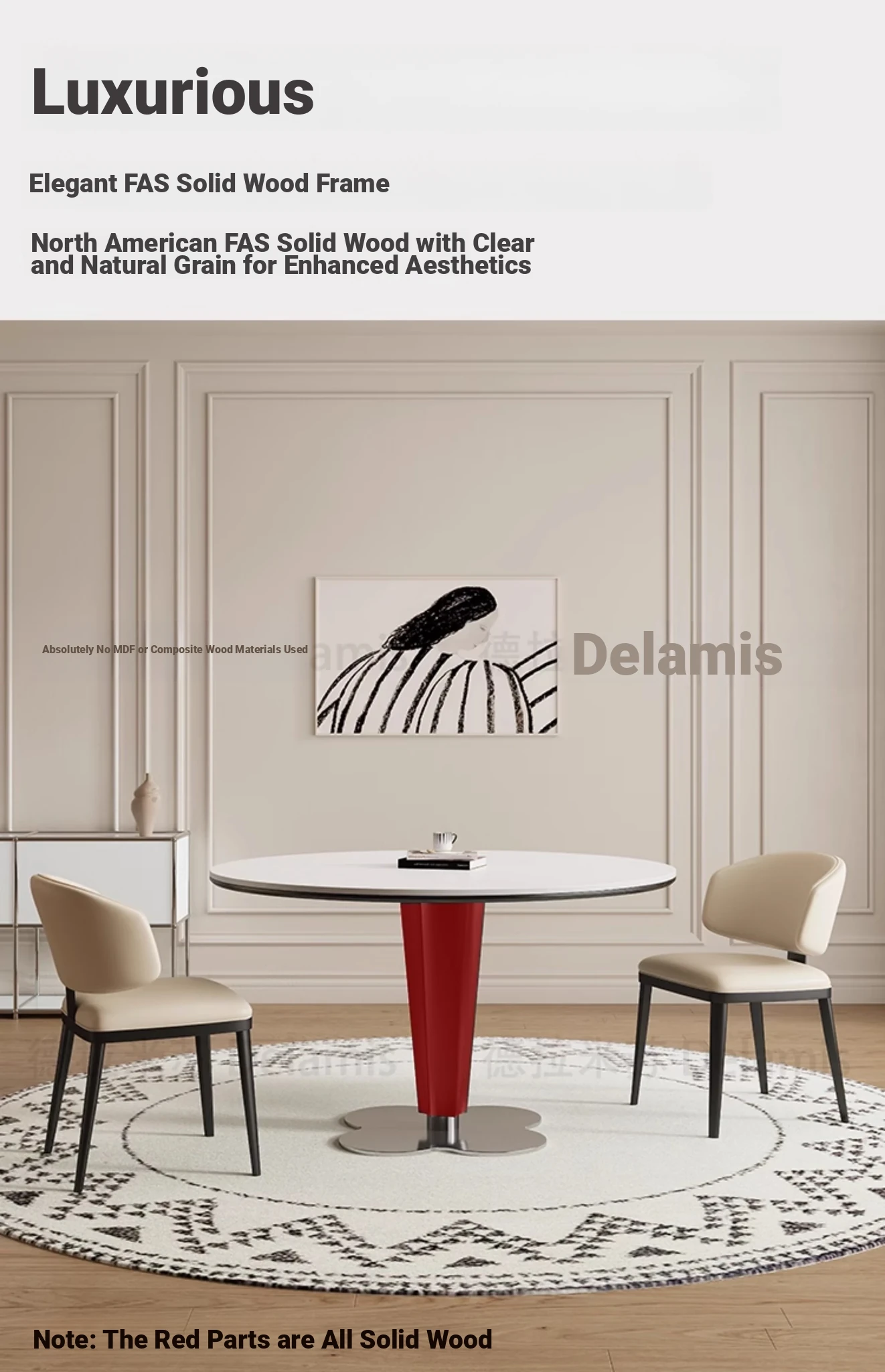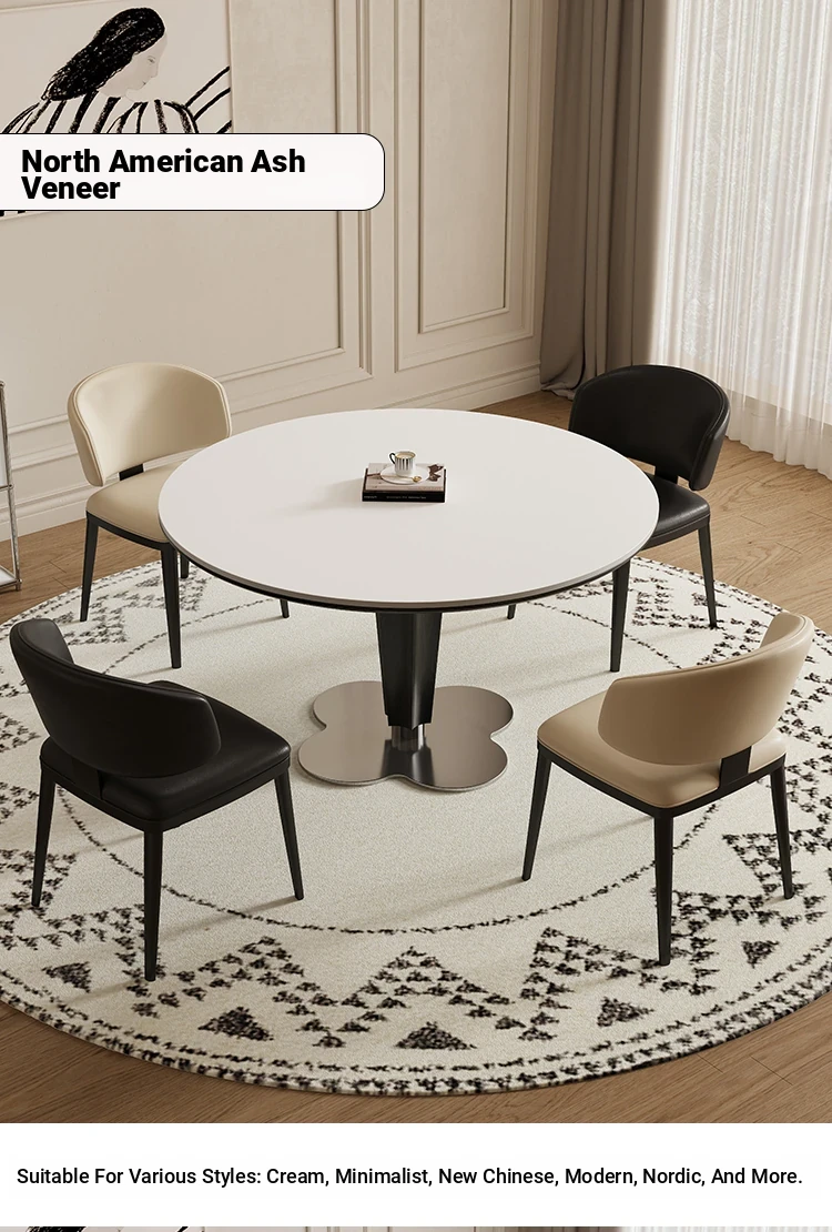 Delifeng Solid Wood Rock Plate Dining Table - French Cream Vintage Round Designer Table for Small Spaces - Perfect for Cozy Dining Experiences