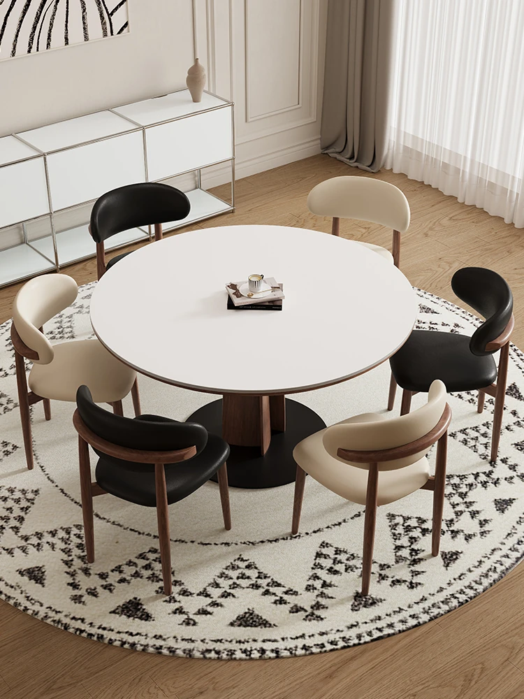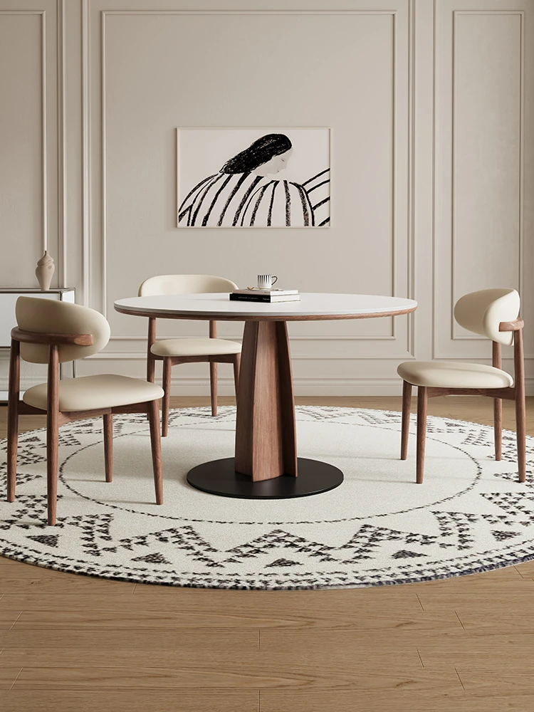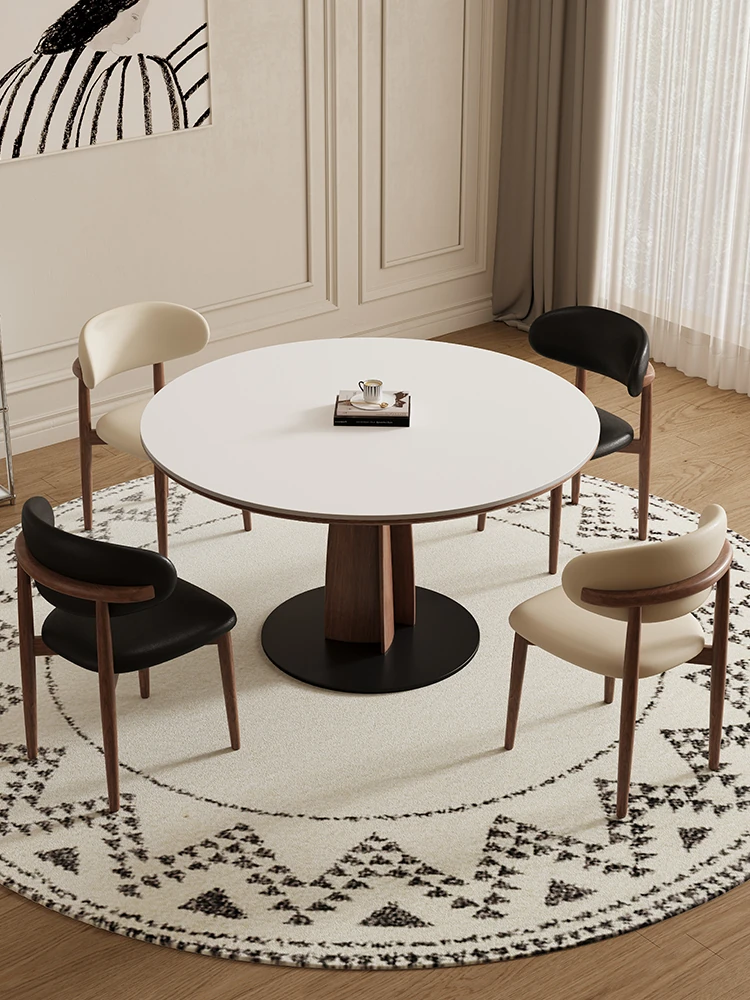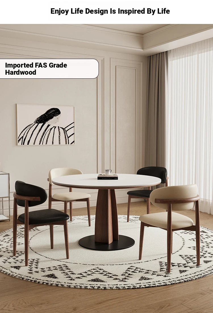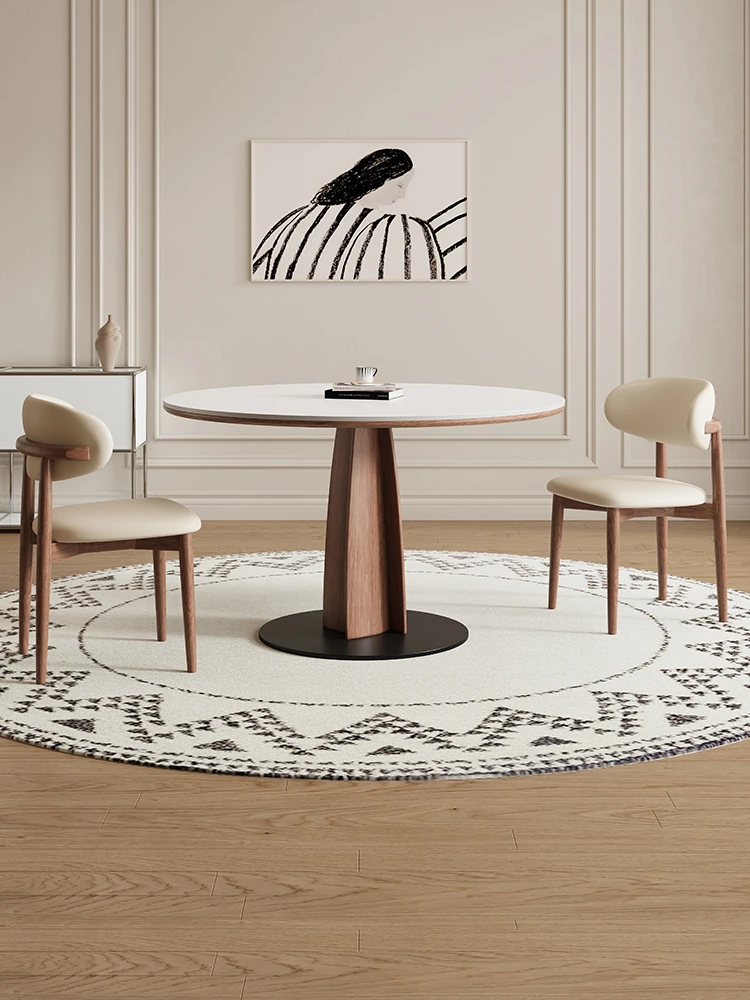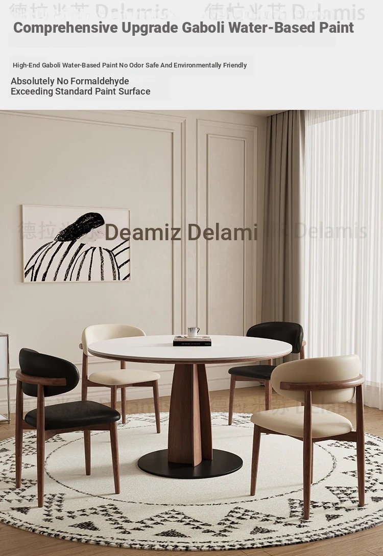 Delifeng Solid Wood Round Dining Table - 1 Meter French Vintage Style High-End Table for Small Spaces, Perfect for Home Use