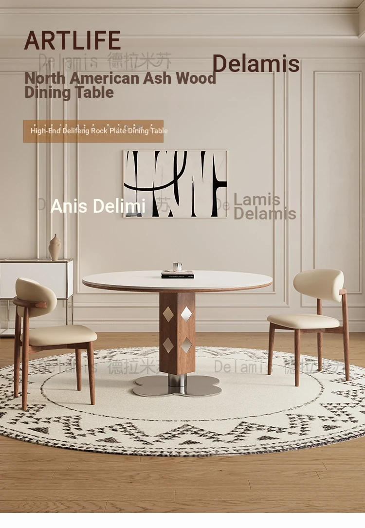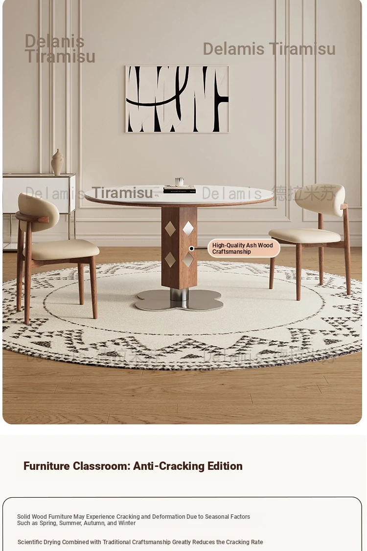 Delifeng Solid Wood Round Dining Table - French Cream Vintage Style Small Space Table for Home, Perfect for Family Meals and Cozy Gatherings