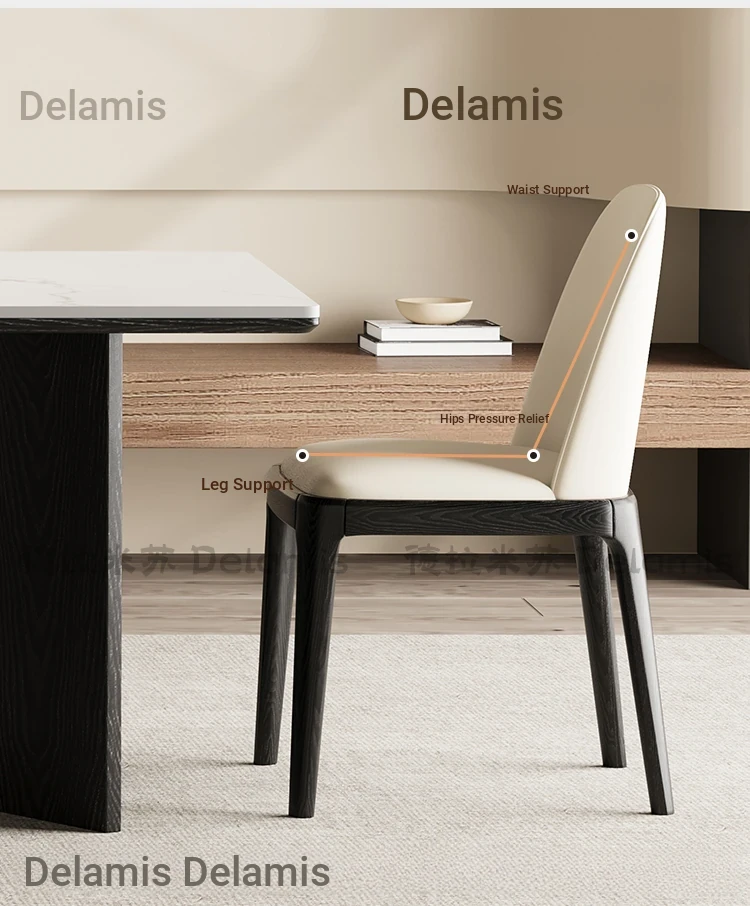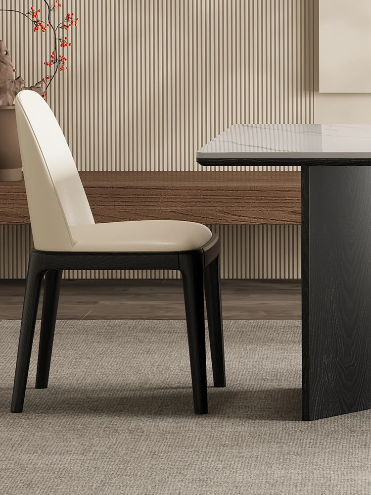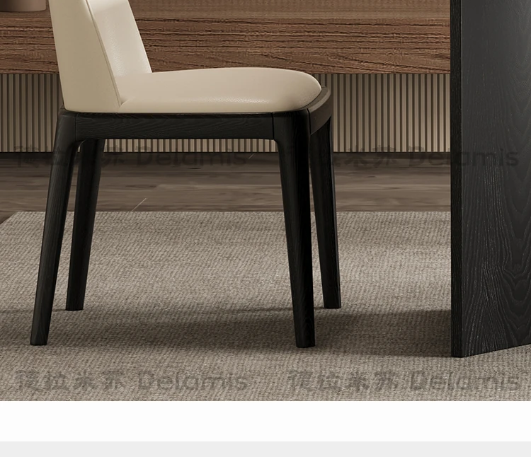 新中式スタイルの高級無垢材ダイニングチェア - ブラックフレンチアンティークデザイン、ホワイトアッシュ材使用、リラックスできるティーチェアとしても最適!