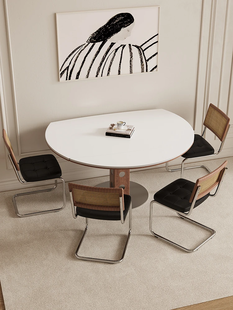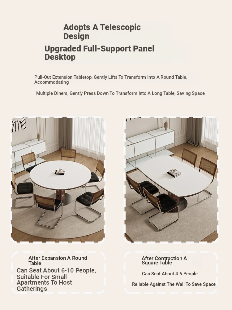 Expandable Delifeng Round Dining Table - Elegant French Cream Vintage Style, Perfect for Small Spaces, Versatile Round/Square Design for Home Use