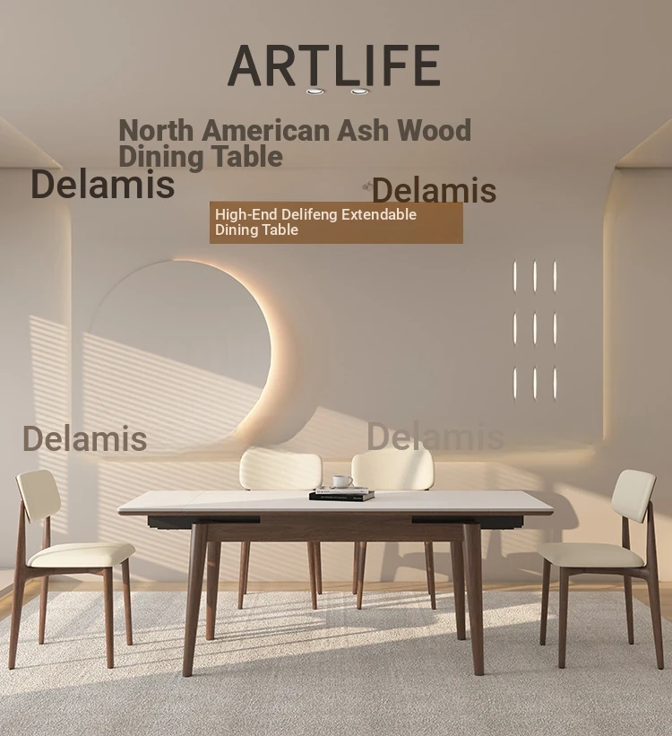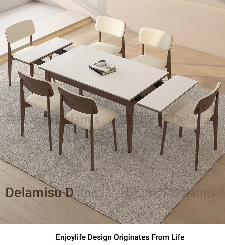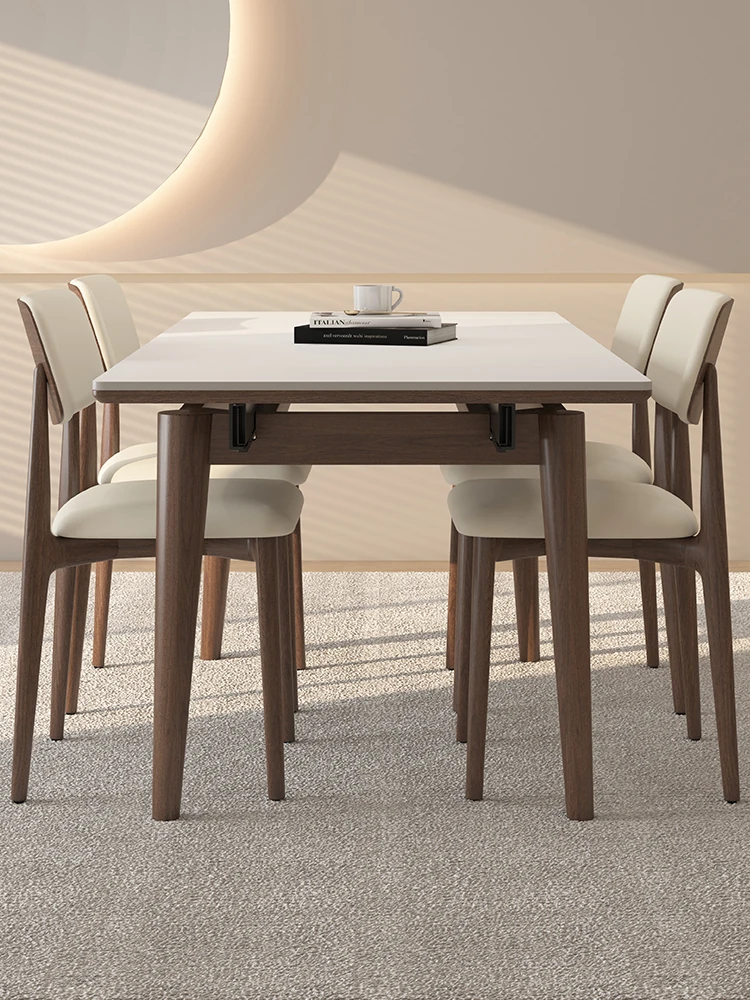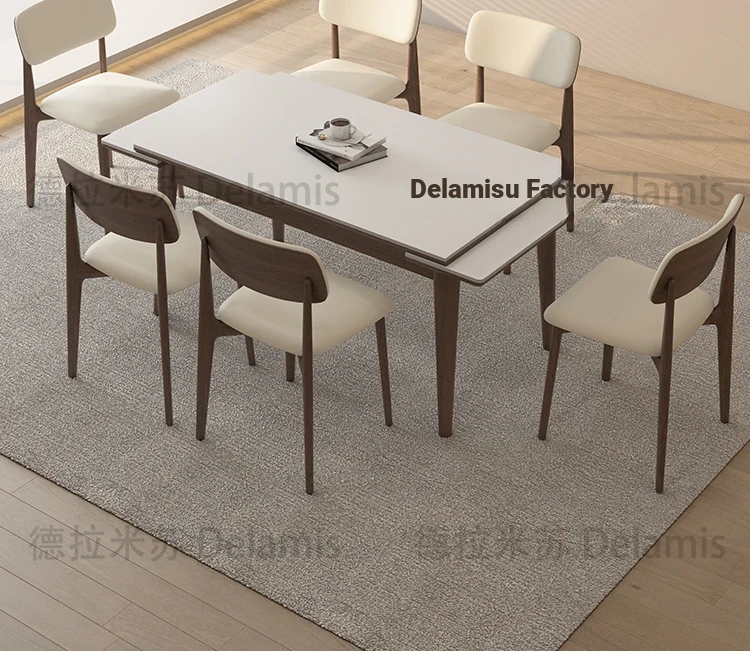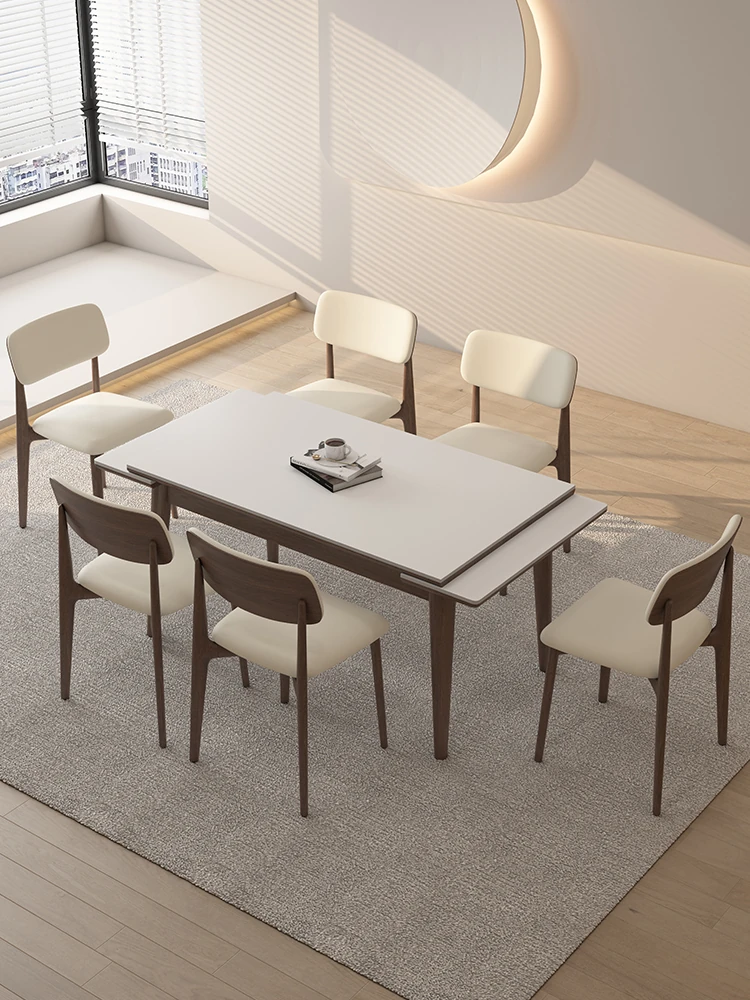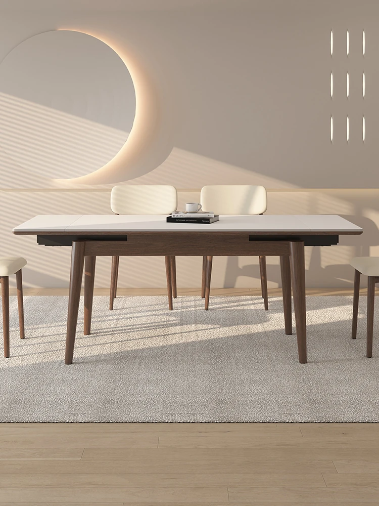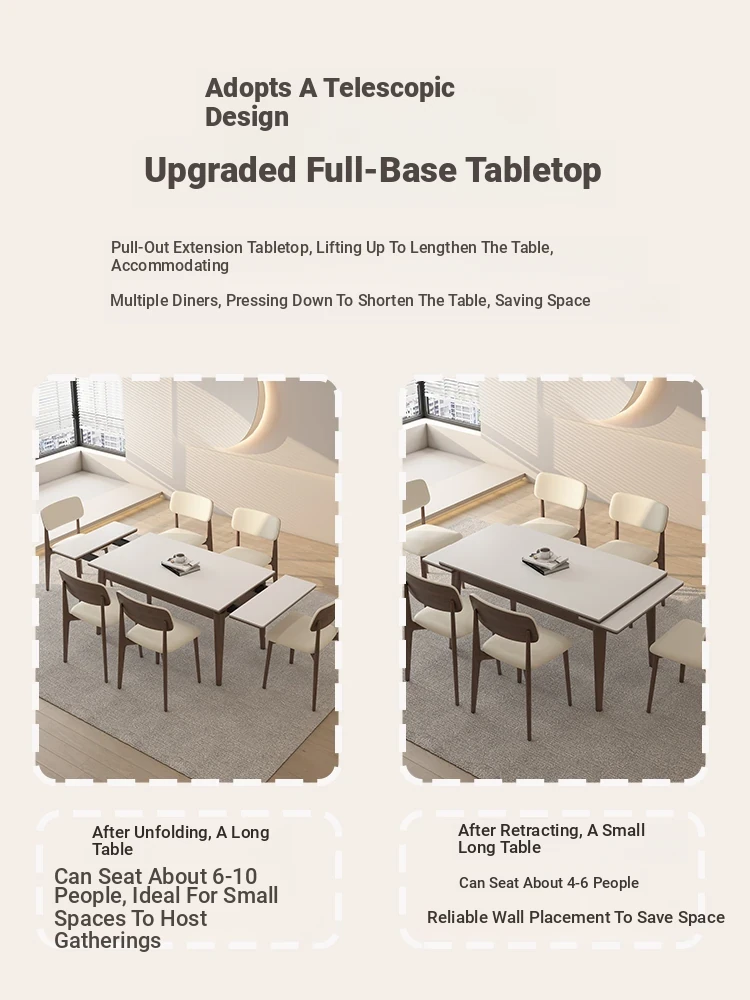 Expandable Solid Wood Dining Table with Cream Vintage Style – Perfect for Small Spaces, Rectangular Design for Cozy Family Meals