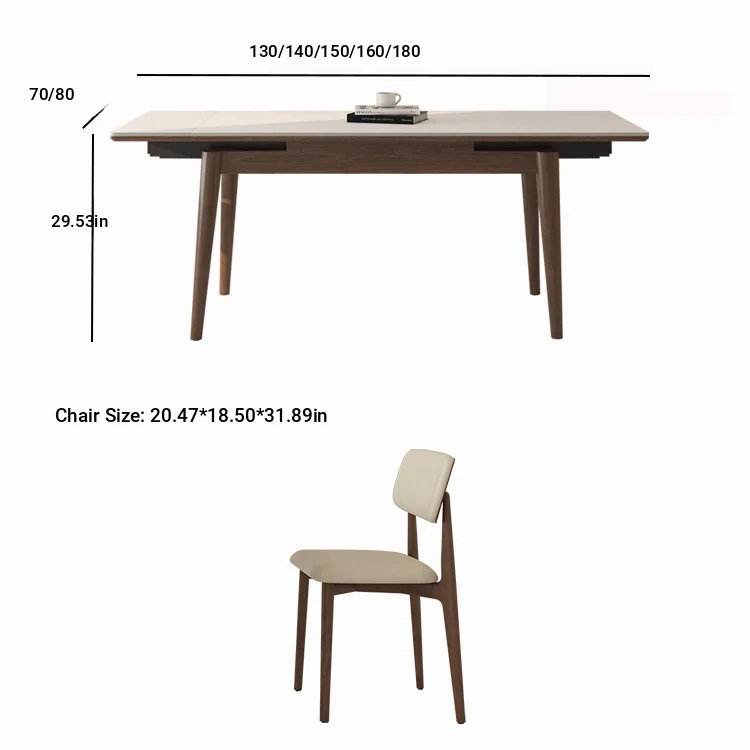 47.24 ins after stretching 70.87 ins [North American ash] +6 chairs