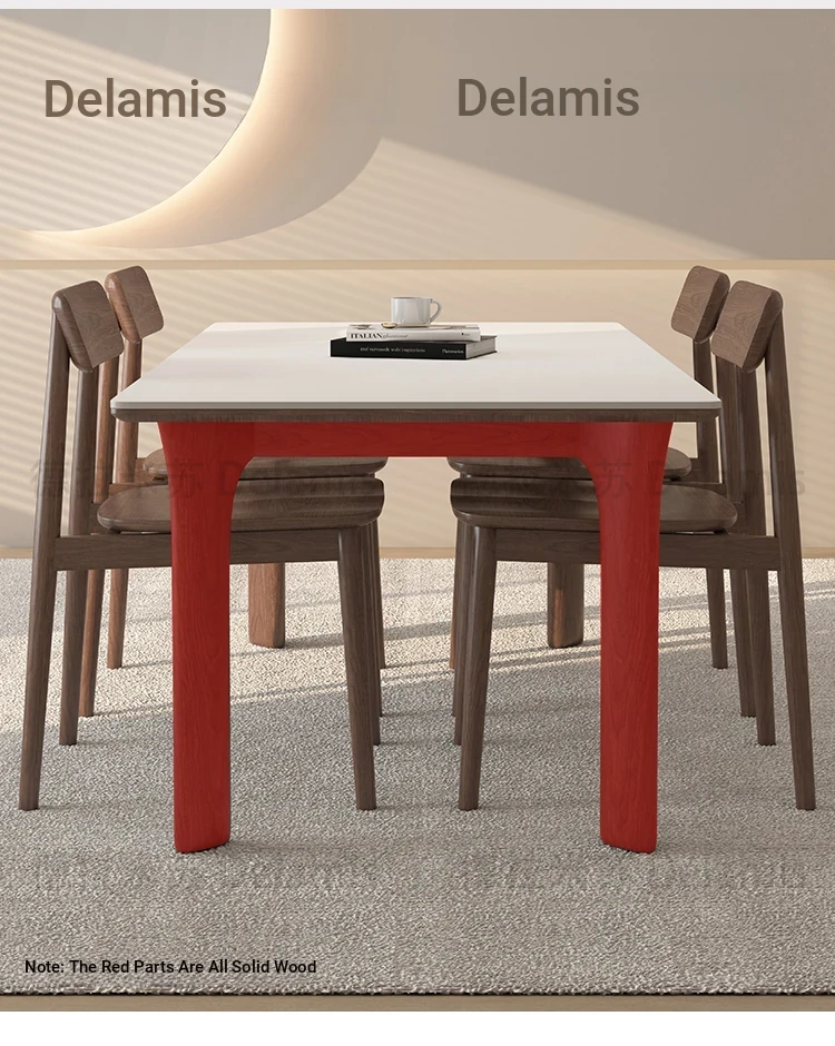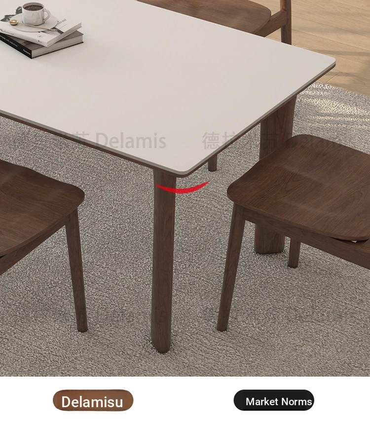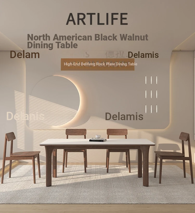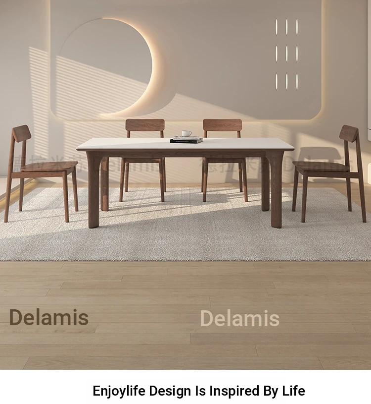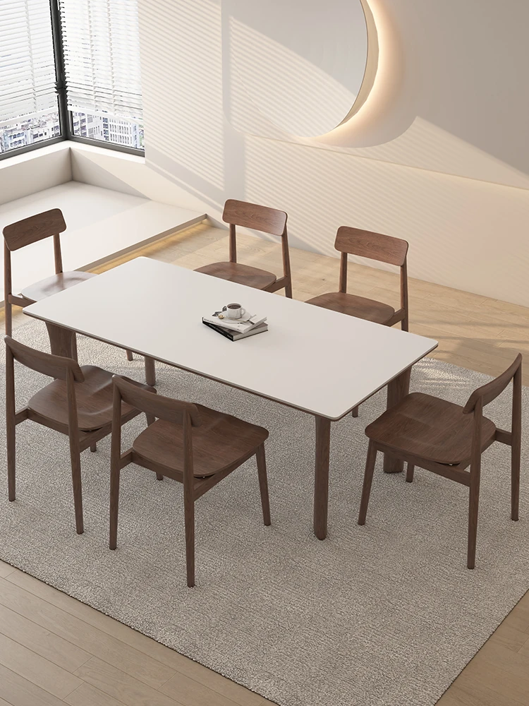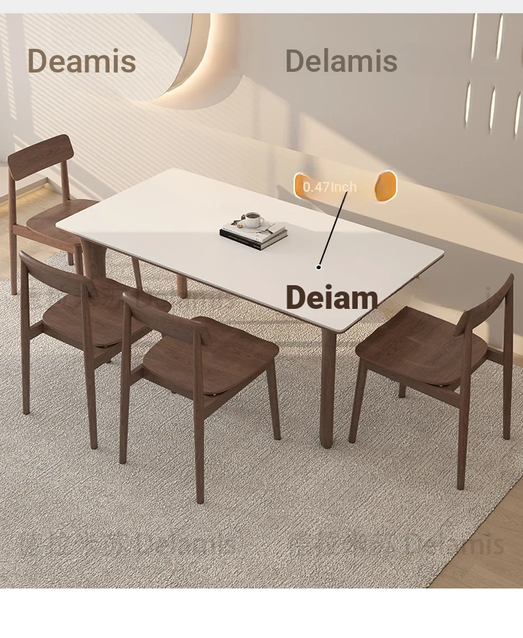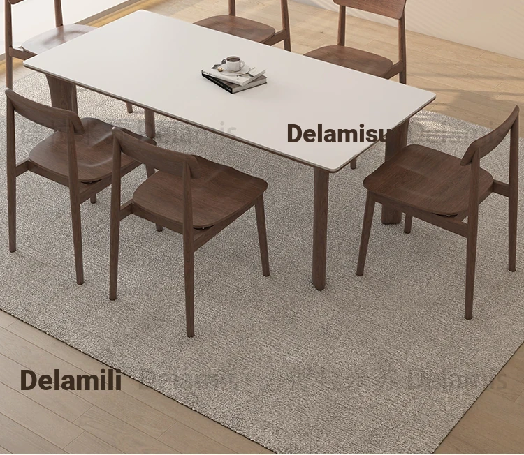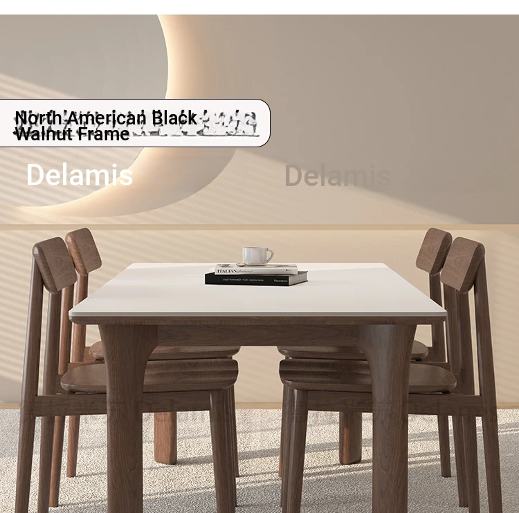 黒檀材のデリフォン岩板ダイニングテーブル&チェアセット - 小さな家にぴったりのクリーム色のレトロモダンデザイン、上質な雰囲気を演出するティー&ブックテーブル。