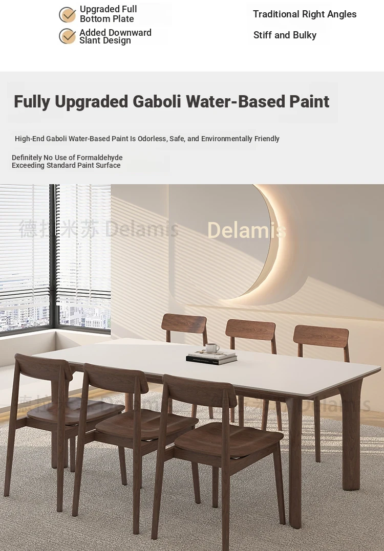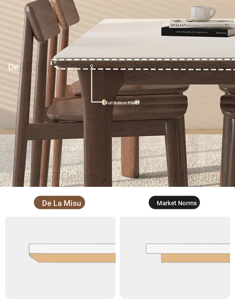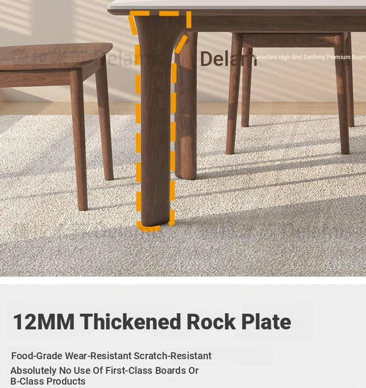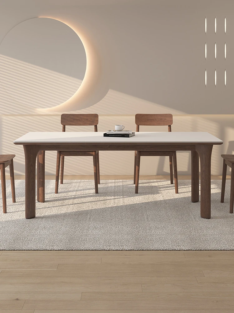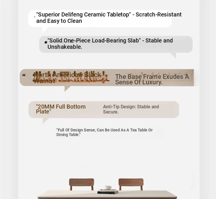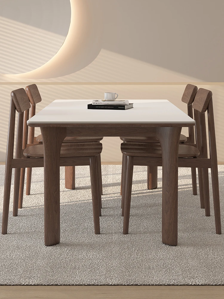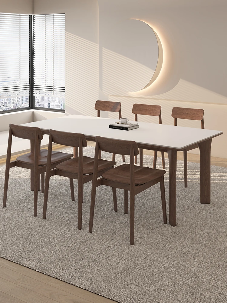 黒檀材のデリフォン岩板ダイニングテーブル&チェアセット - 小さな家にぴったりのクリーム色のレトロモダンデザイン、上質な雰囲気を演出するティー&ブックテーブル。