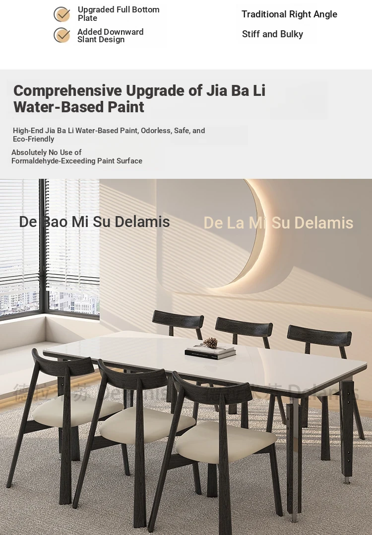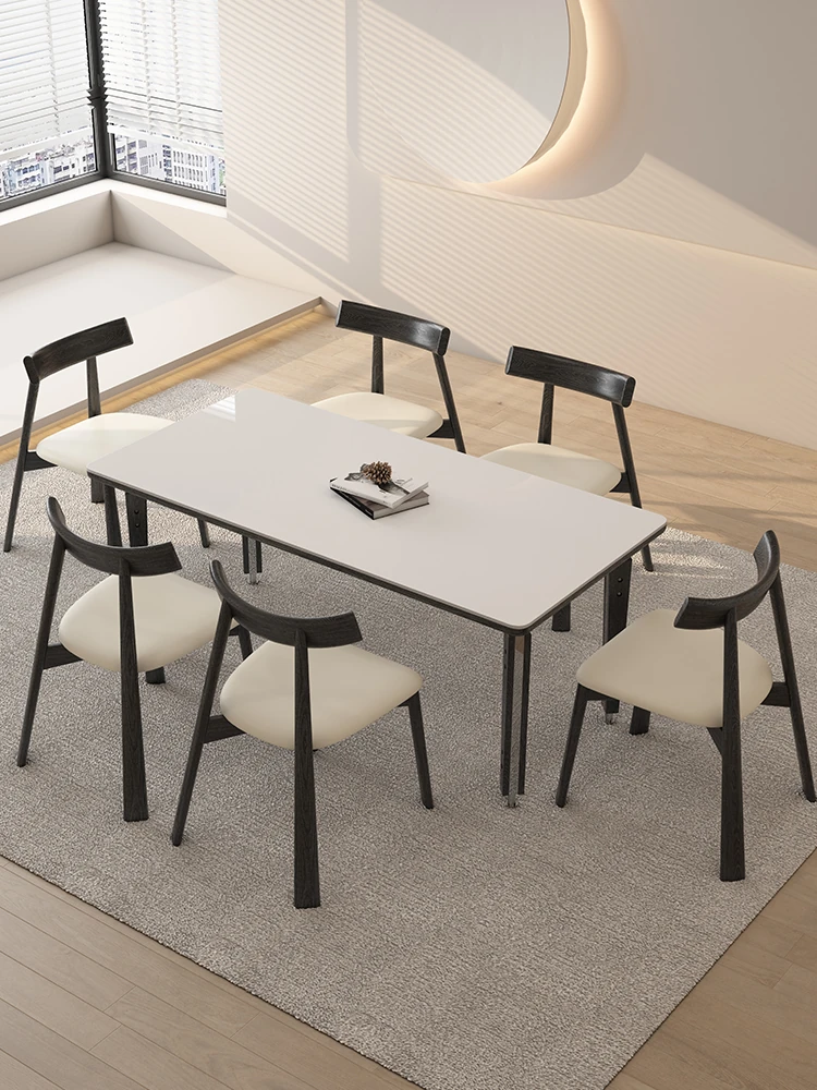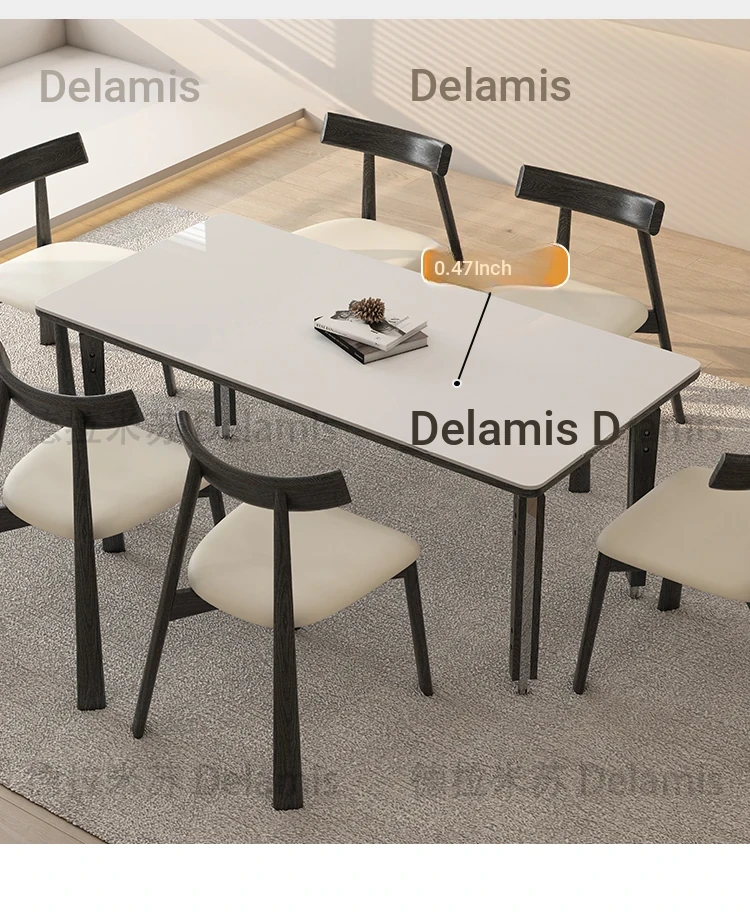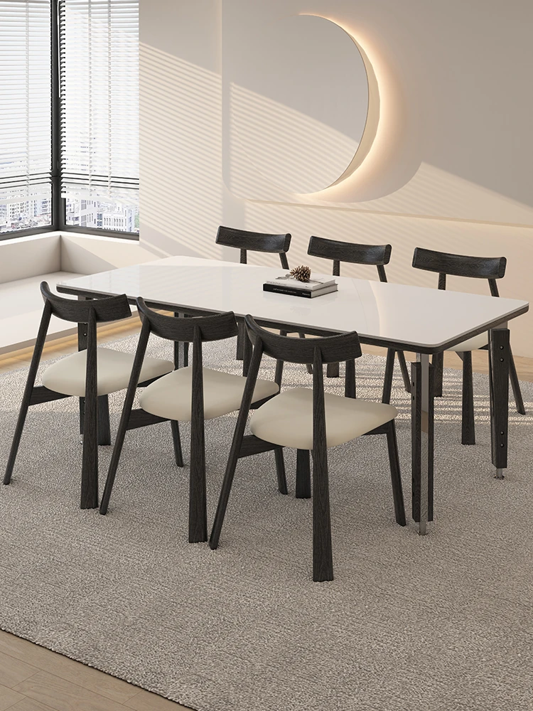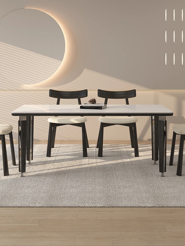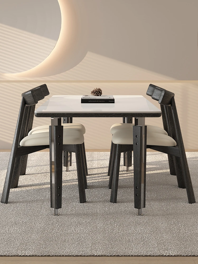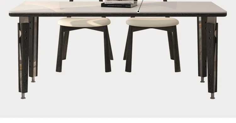 Vintage Style Solid Wood Dining Table with Rock Slab - Creamy Aesthetic, Elegant Black Design for Small Spaces, Perfect for Home Dining