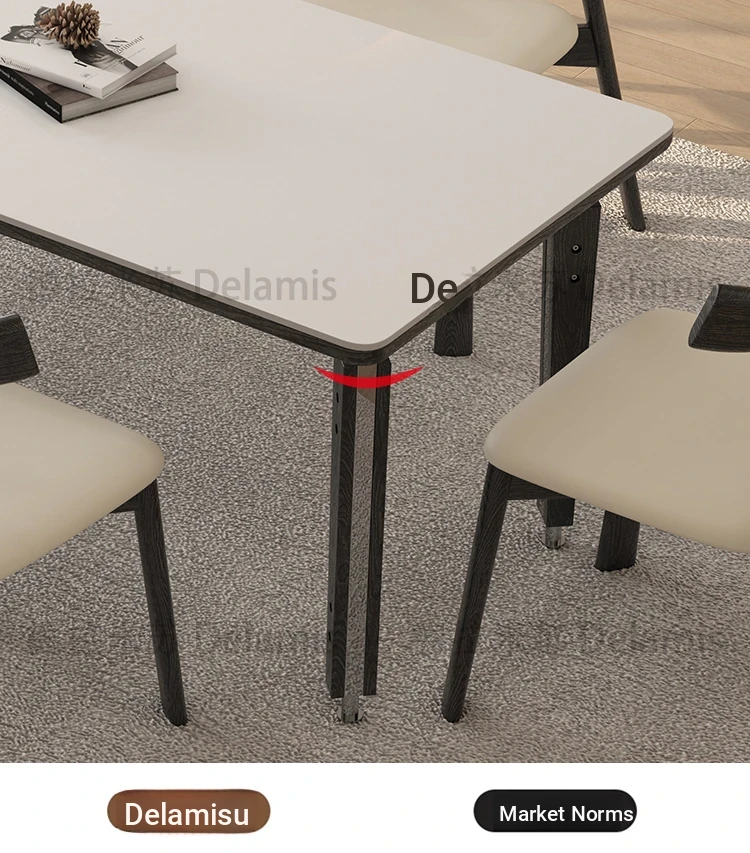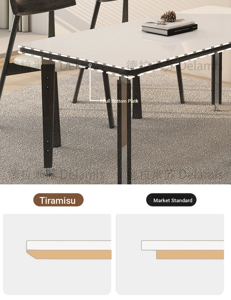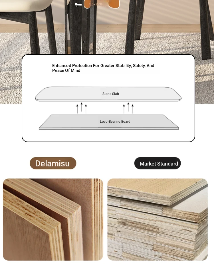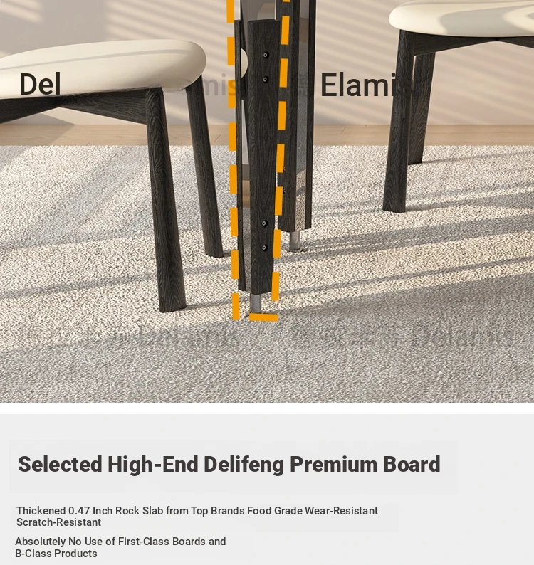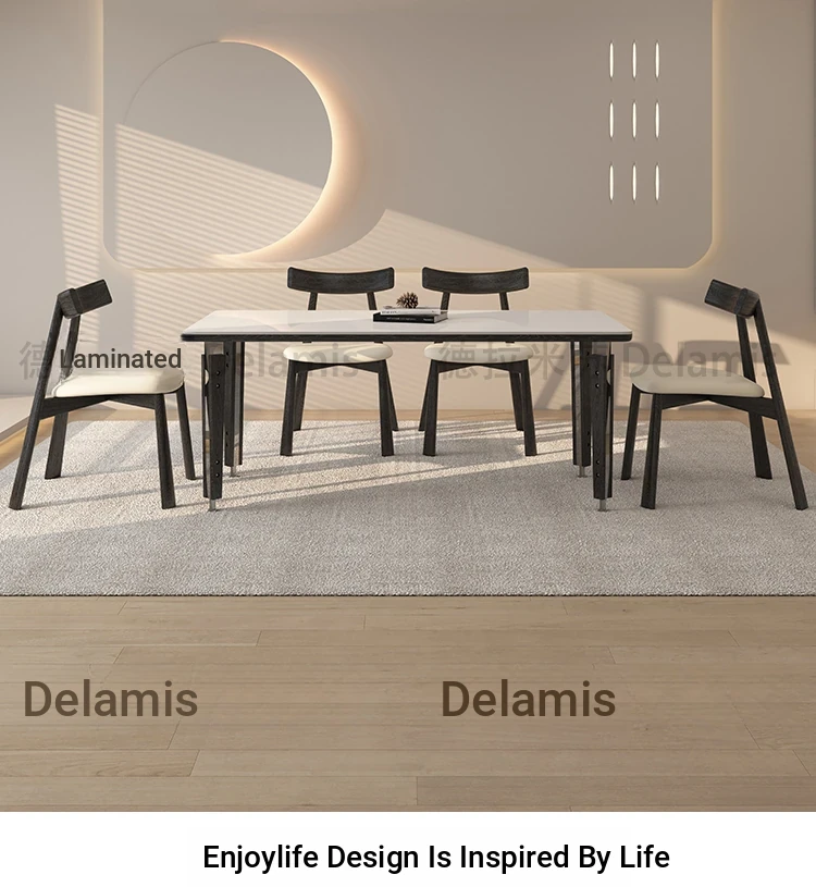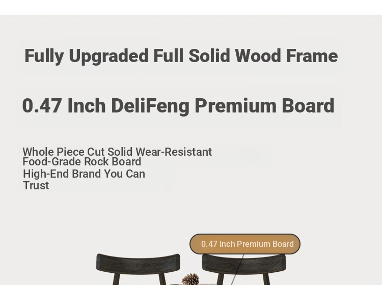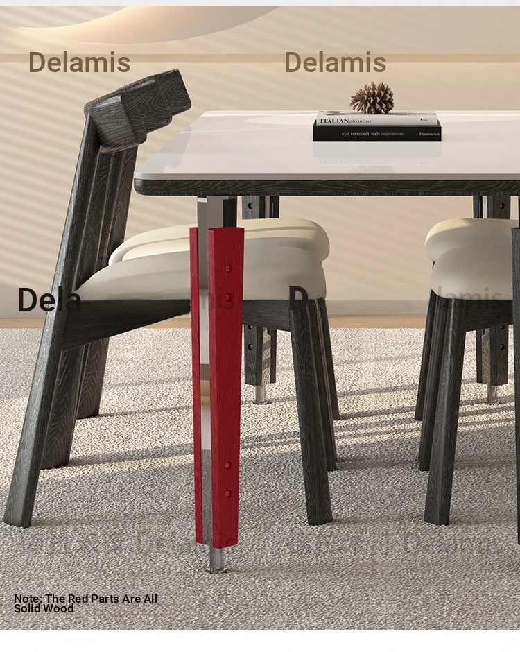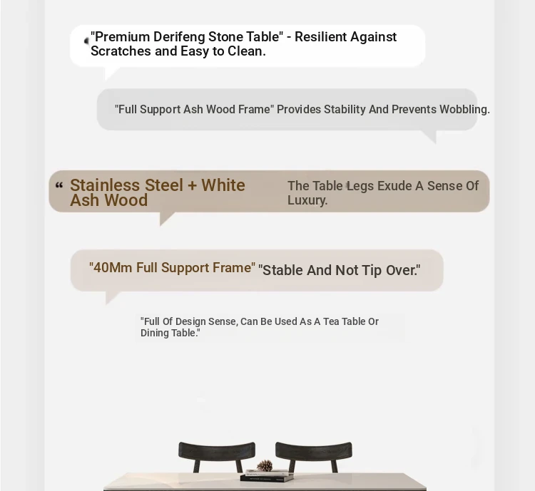 Vintage Style Solid Wood Dining Table with Rock Slab - Creamy Aesthetic, Elegant Black Design for Small Spaces, Perfect for Home Dining