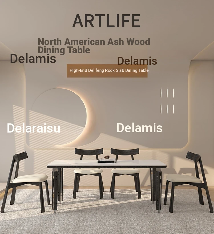 55.12 in solid wood dining table [North American ash] + solid wood dining chair * 6