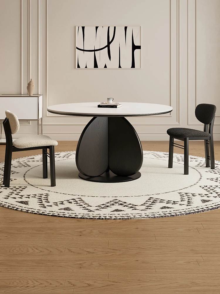 デリフォンのブラックロックテーブル - 小型住宅向け、フレンチクリームの中世風、埋め込み式ラウンドダイニングテーブル。シンプルで洗練されたデザイン、あなたの食卓を特別な空間に変えます。