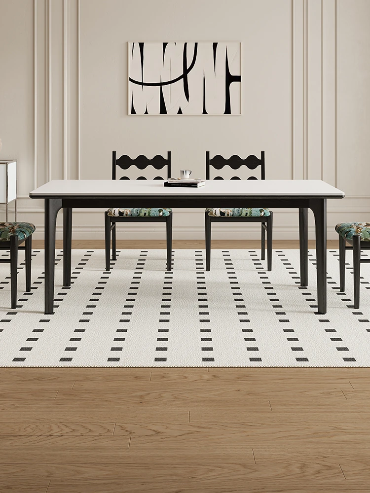 黒檀材のデリフォン岩板ダイニングテーブル&チェアセット - 小さな家にぴったりのクリーム色のレトロモダンデザイン、上質な雰囲気を演出するティー&ブックテーブル。
