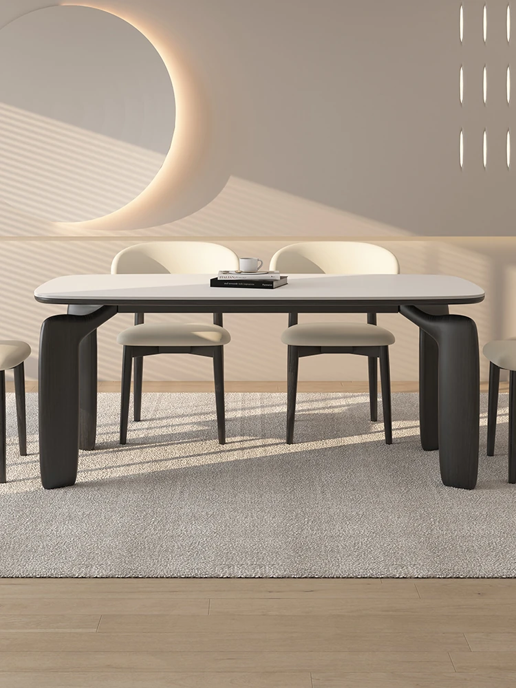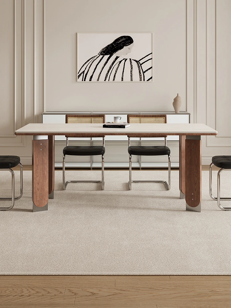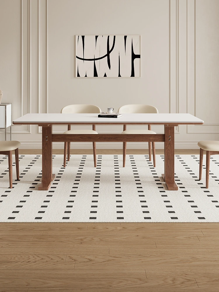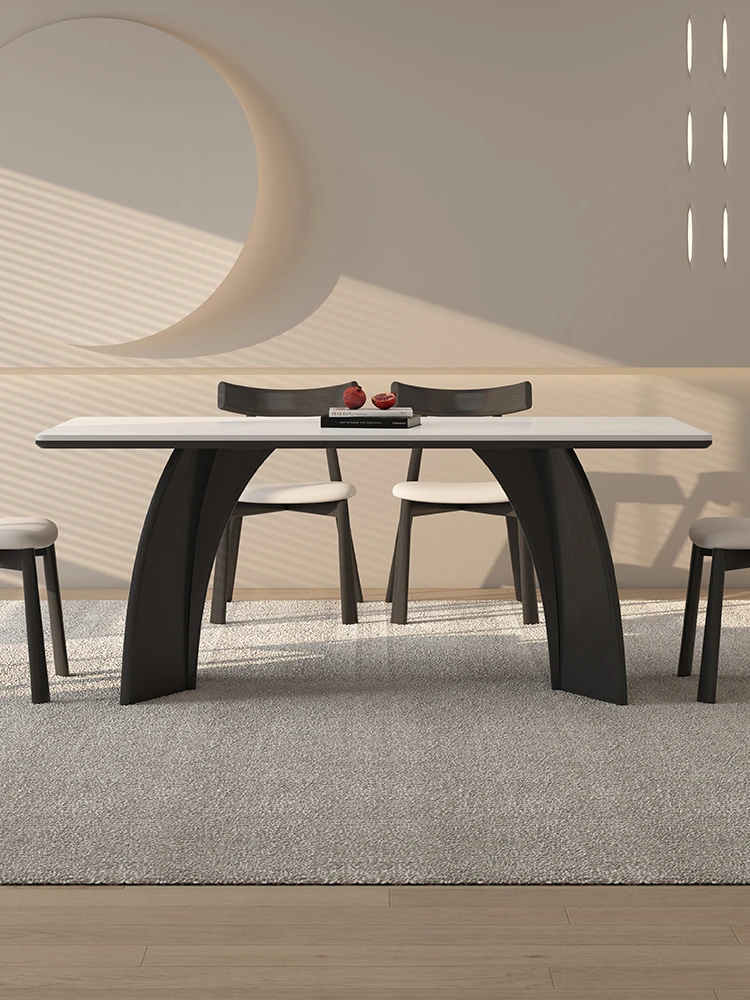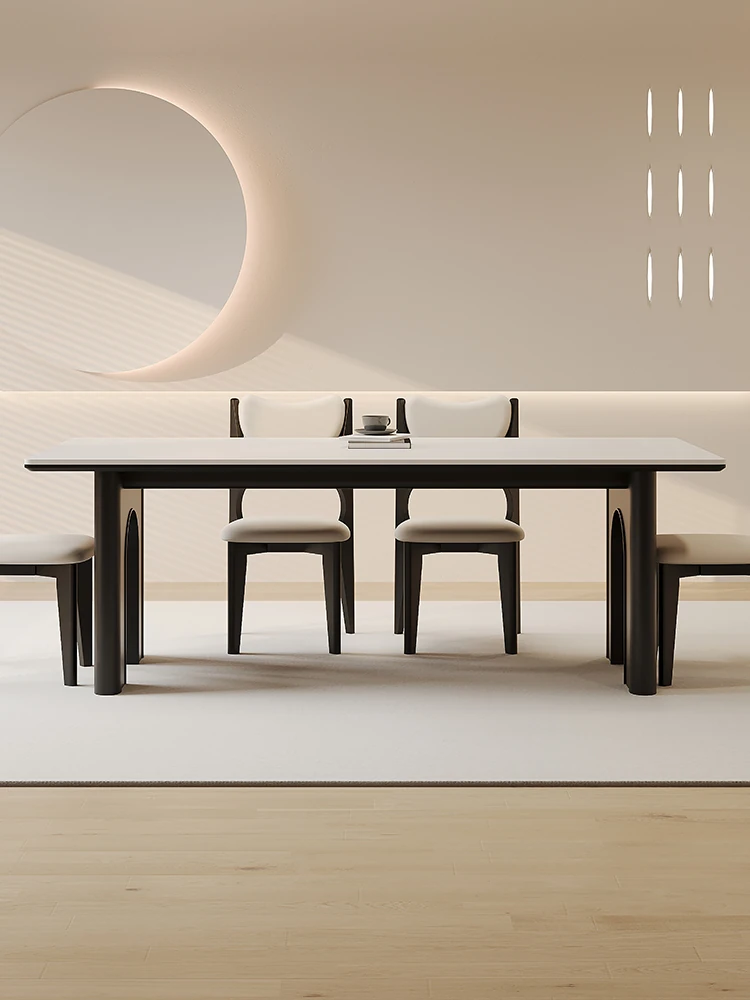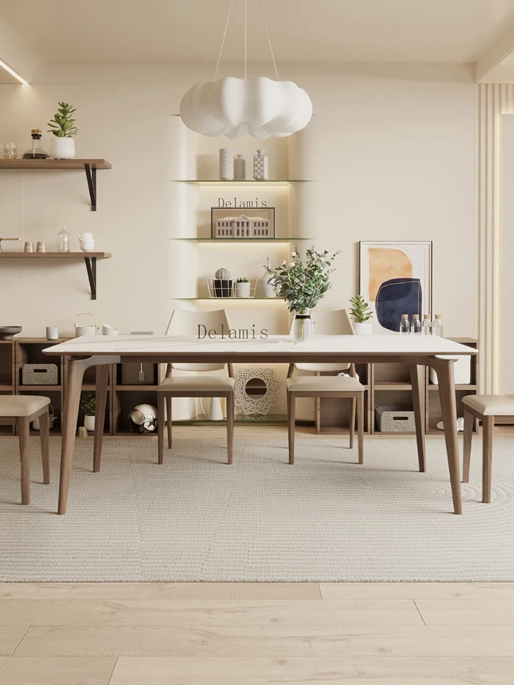 デリフォン無垢ウォールナット岩板ダイニングテーブル - シンプルで高級感あふれる侘寂スタイル、コンパクトな小型住宅にもぴったりな美しい食卓。家族や友人との特別なひとときを演出します。