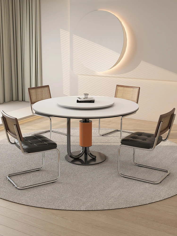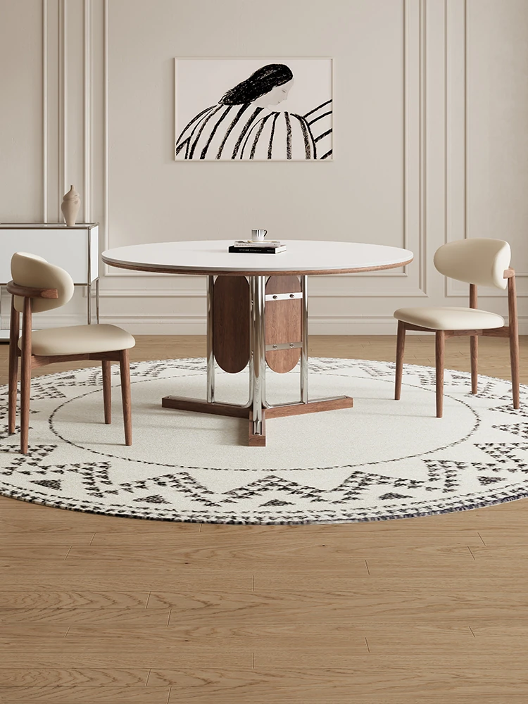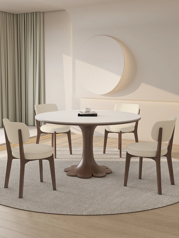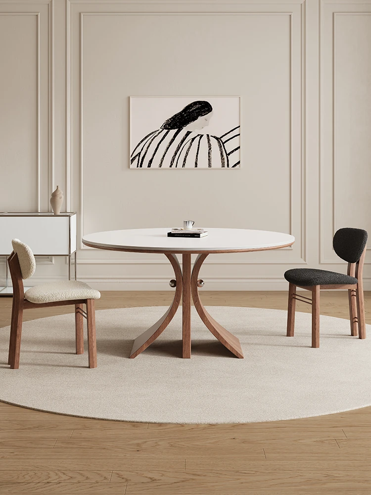 デリフォン高級デザインの無垢材ロックテーブル - 円形・コンパクトサイズ、クリーミーなミッドセンチュリースタイルの全托円卓で、あなたの食卓を華やかに演出します。家庭用に最適!