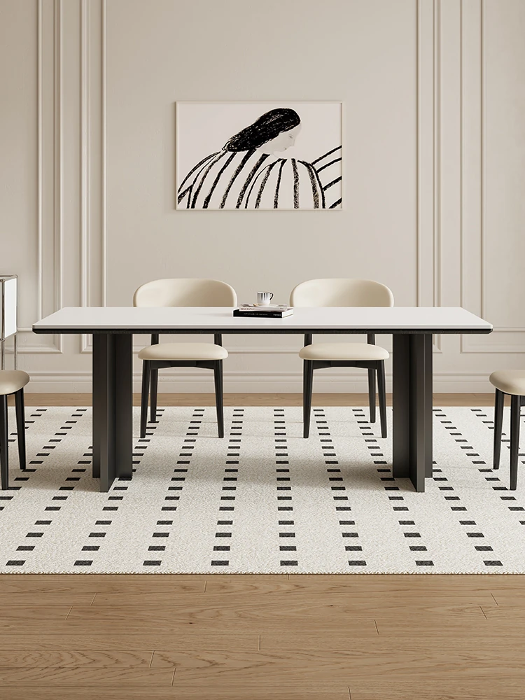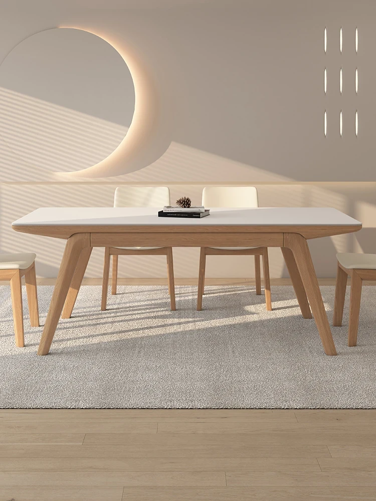 デリフォン無垢材ロックテーブル|家庭用ミニマリストクリーム色中古スタイルダイニングテーブル|モダンシンプル長方形デザインで、おしゃれな食卓を演出!